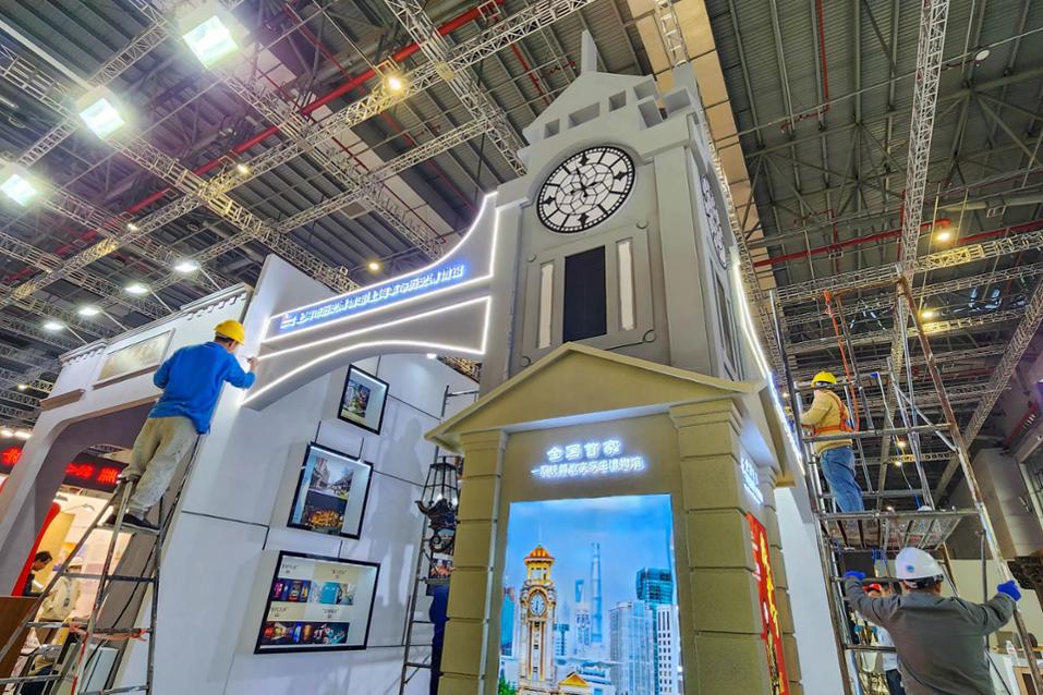 展会前夕,工人师傅正在进行最后的冲刺。劳动报记者颜筱依 摄