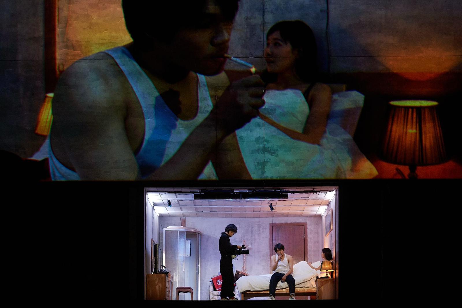 话剧《生吞》通过即时摄影放大舞台表演。受访者供图