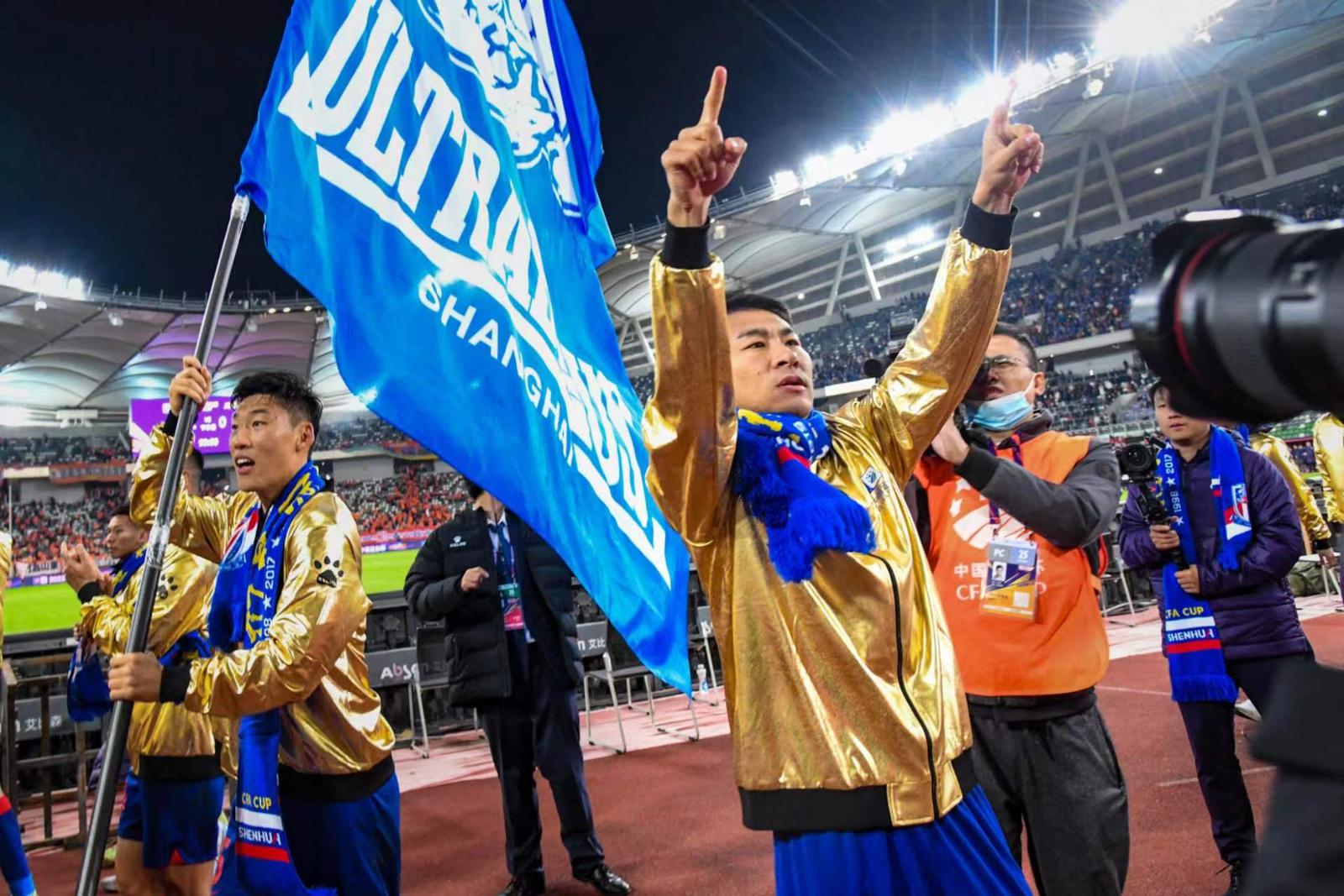 球迷庆祝申花夺冠。劳动报记者颜筱依 摄影