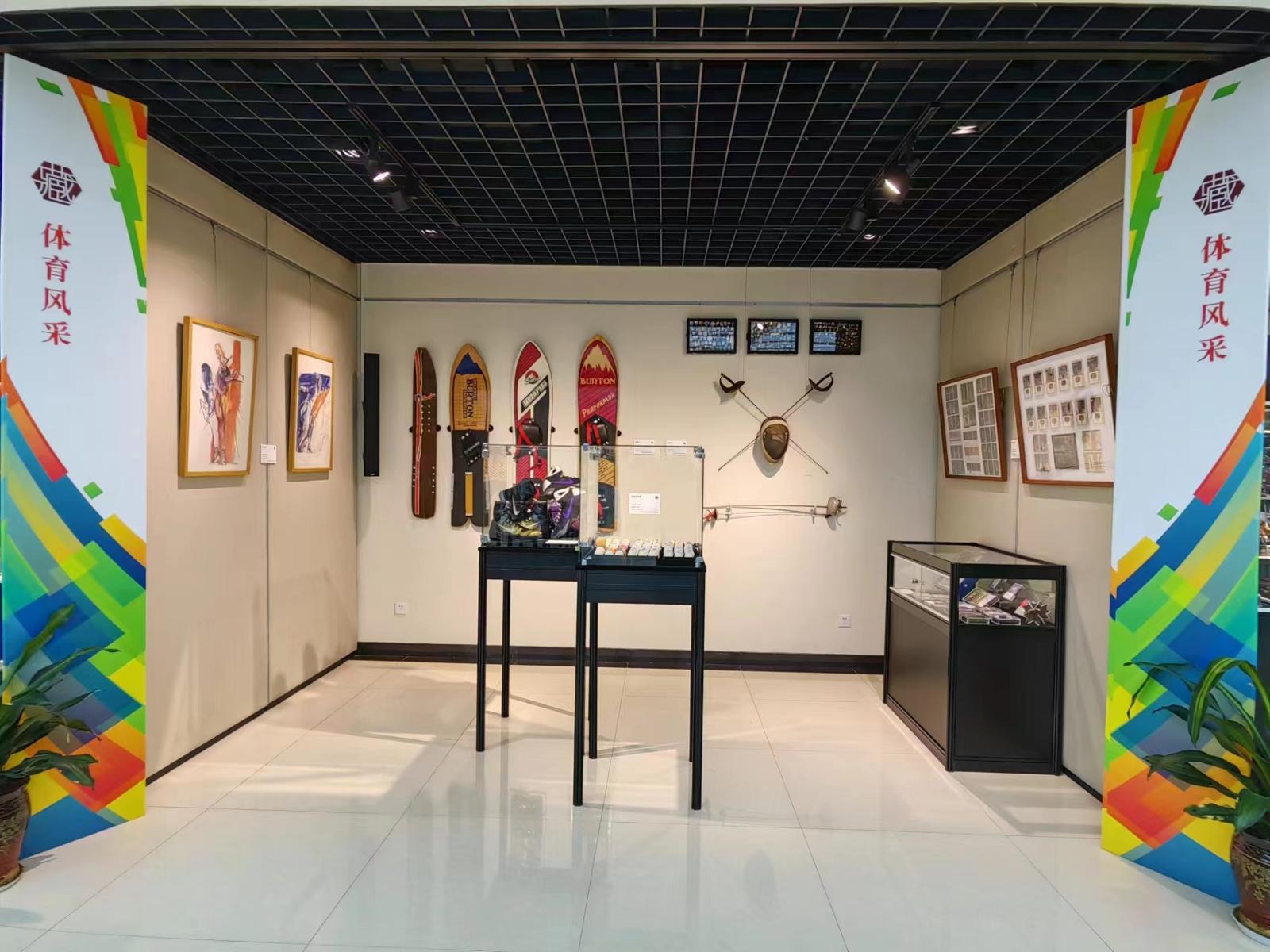 体育风采版块展示了体育明星滑雪板、纪念乒乓球等展品。劳动报记者马亚会 摄影