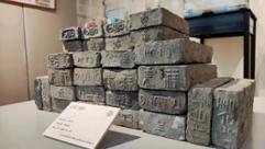 展出的石库门墙砖。劳动报记者马亚会 摄影