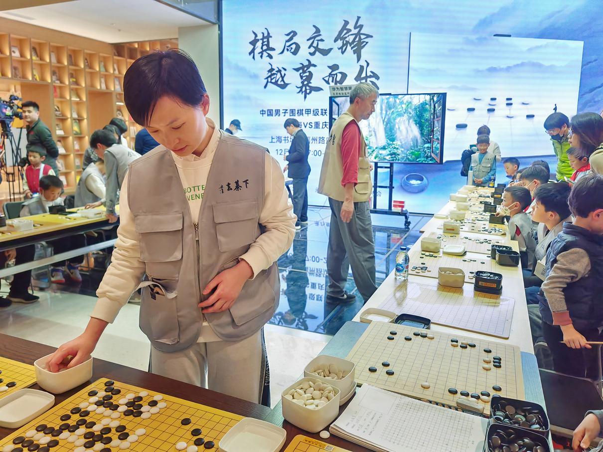 这场比赛在上海棋院进行的同时,一场围棋推广活动在改造一新的上海书城6楼举行。上海棋院院长刘世振与胡耀宇、江铸久、芮乃伟、唐奕五人,与到场的约40名学棋小朋友展开车轮大战,点燃了孩子们的围棋热情。