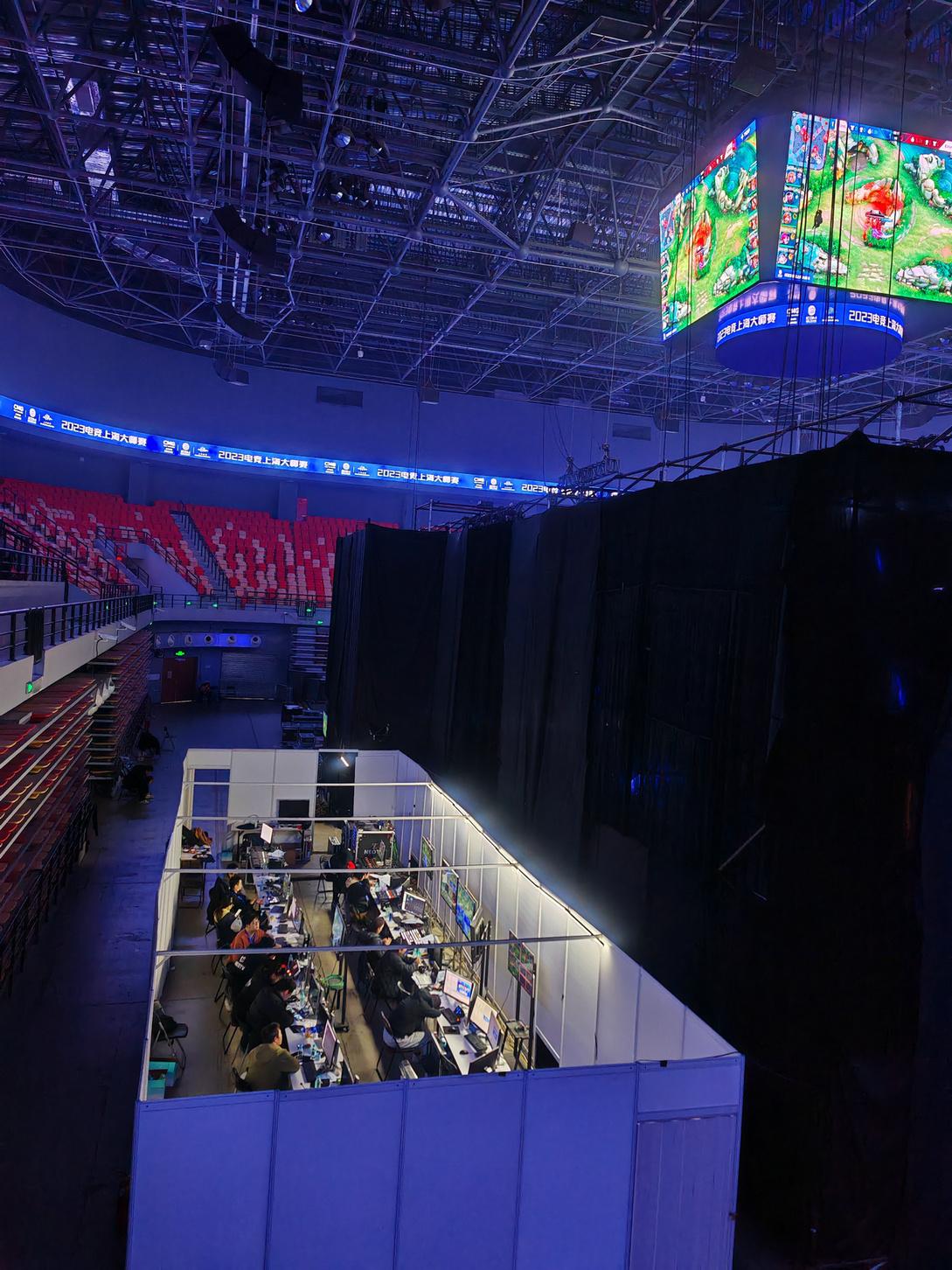 时隔3年重新回归的电竞上海大师赛日前闭幕,赛事精彩进行的同时,一群人就坐在选手竞赛舞台的背面,围坐在大大小小的电脑屏幕前,快速切换着比赛画面。