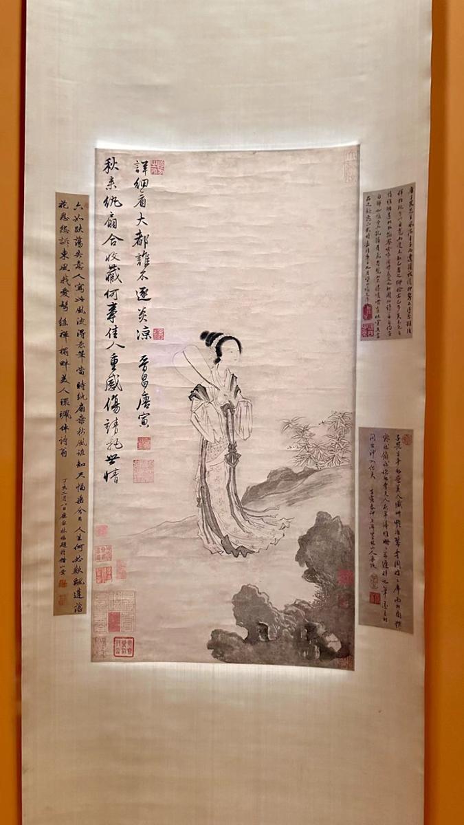 “对话达芬奇特展”展品之一,唐寅《秋风纨扇图》。劳动报记者唐一泓 摄影