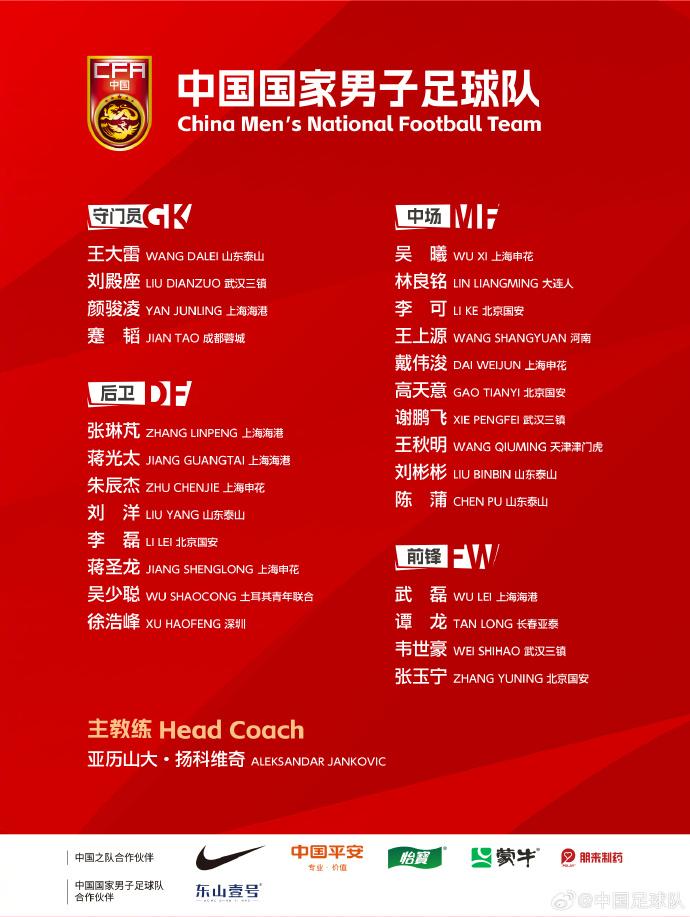 26人唯一的新人,是中超成都蓉城俱乐部的原U20国青队主力门将蹇韬。此外,因伤缺席了上一阶段比赛的王秋明、蒋光太和林良铭三人回归,他们都是可以竞争主力位置的球员,可以丰富国足的阵容选择。