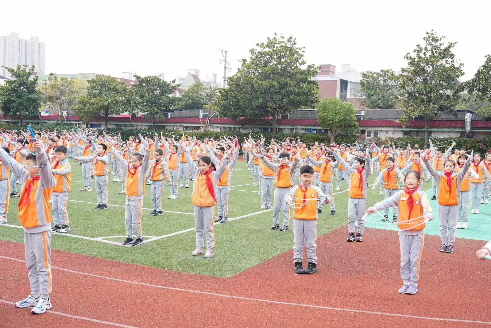 一旁的校长支乔告诉记者,高境科创实验小学是全国最早一批引入花样跳绳的学校,并建构了“绳织纵横”的特色育人模式,从课程推进、绳趣社团、家校联动、竞赛交流等方面全方位帮助青少年身心成长。