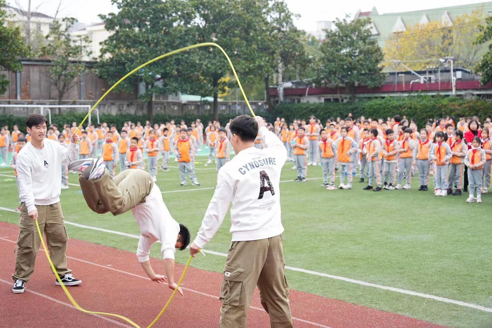 世界冠军走进宝山校园展示跳绳绝技。受访者供图