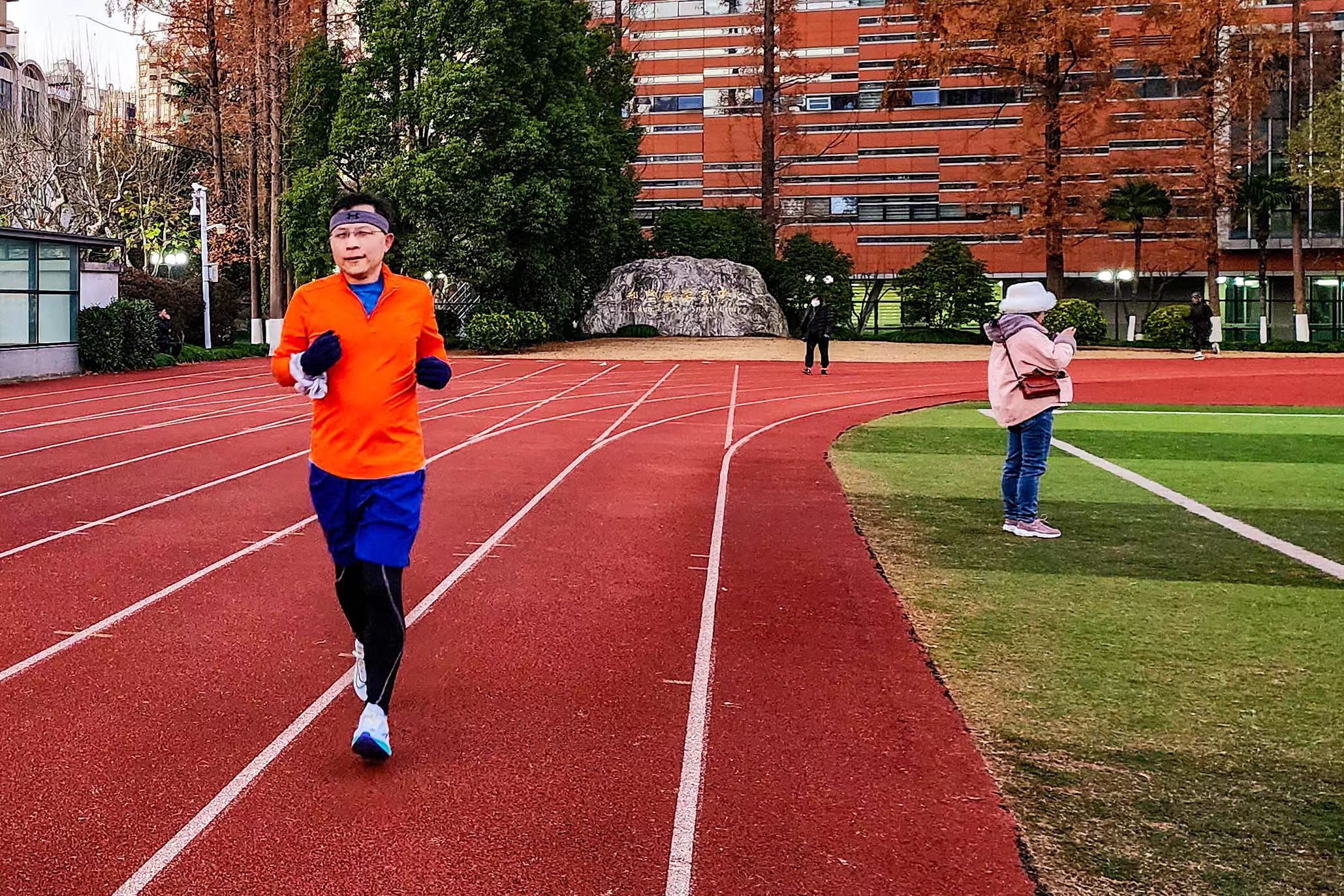 头图为跑友在交大徐汇校区操场跑步。劳动报记者颜筱依 摄影