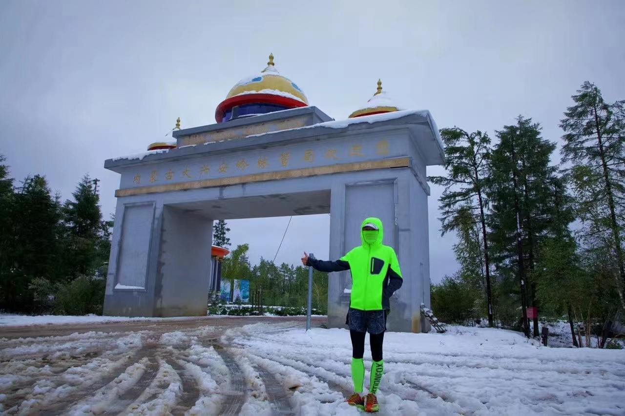 熊贤军曾在大兴安岭的雪地里跑步。受访者供图