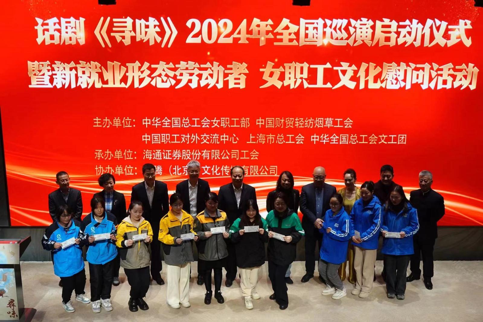 “熬上这一锅乡愁汤,熬这一辈子的难忘,家并未走远,只是好久不见……”伴随着《寻味》主题曲的歌声,3月5日16时,话剧《寻味》2024年全国巡演启动仪式暨新就业形态劳动者、女职工文化慰问活动在沪举行。