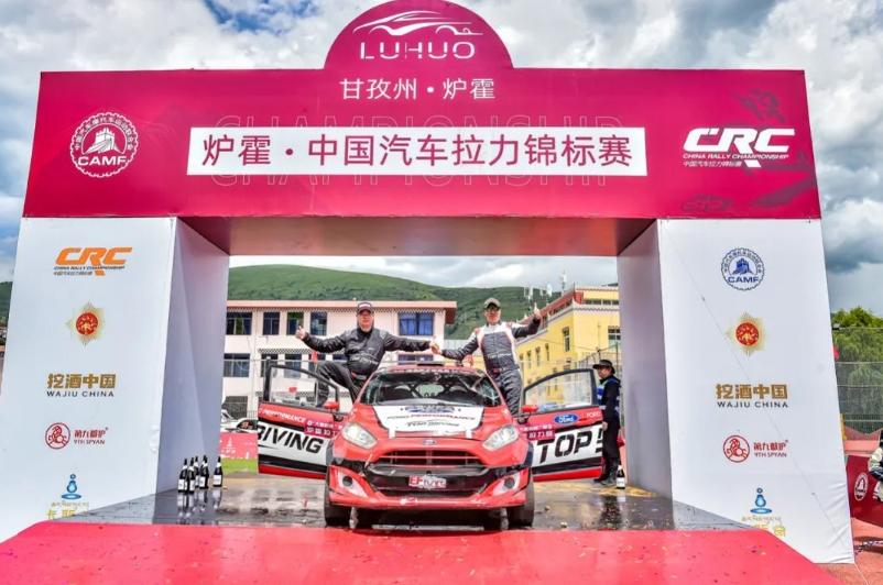 谢鹏和领航员一起庆祝首次夺得CRC冠军。受访者供图