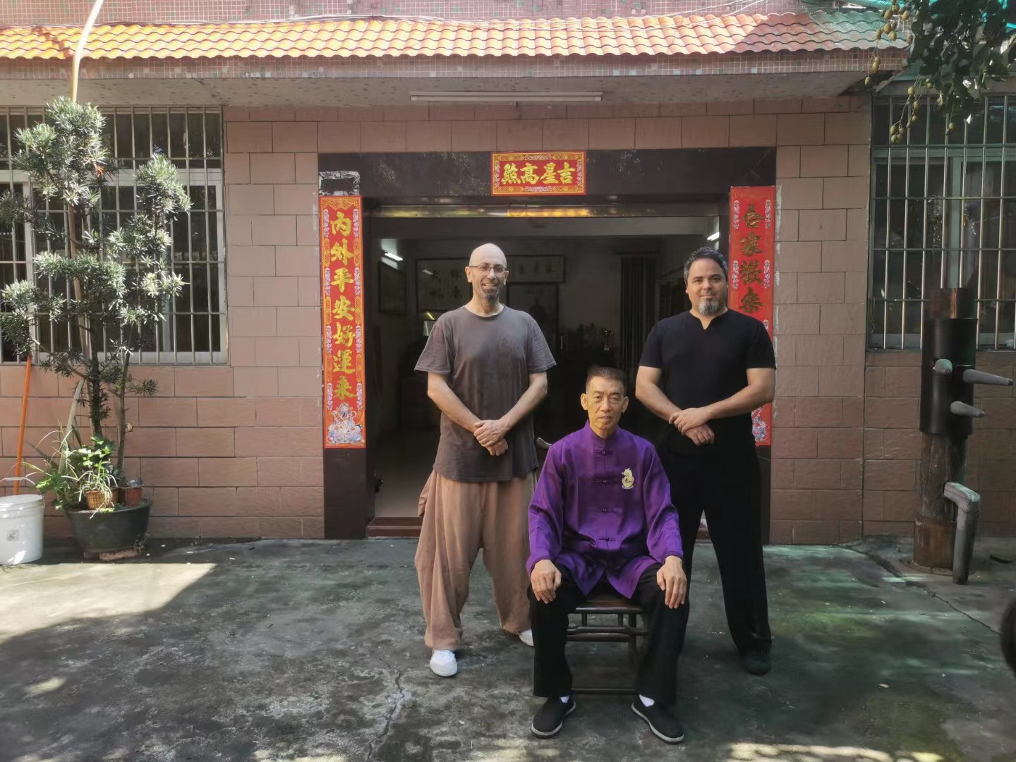 白和保罗与叶问第三代传人郭伟湛合影,现在他们仍会每月飞去佛山与郭师傅切磋交流。受访者 供图