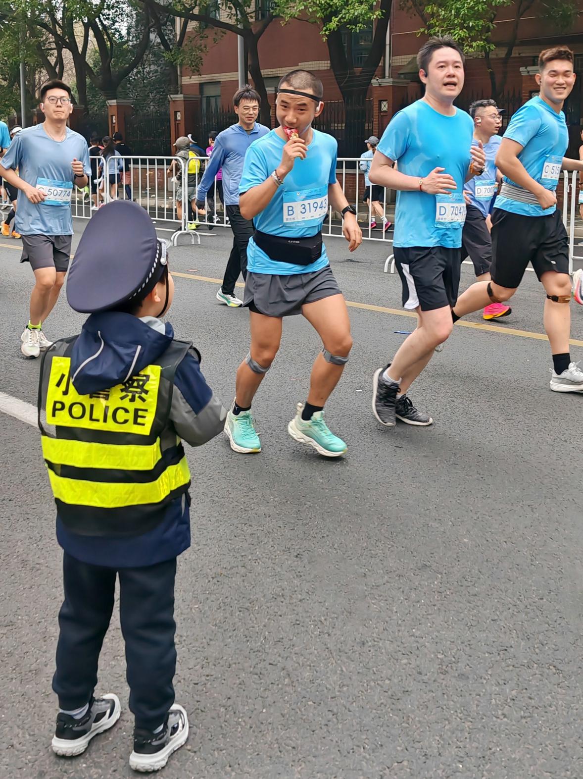 “小警察”为静安半马的选手们加油助威。劳动报记者王卫朋 摄影