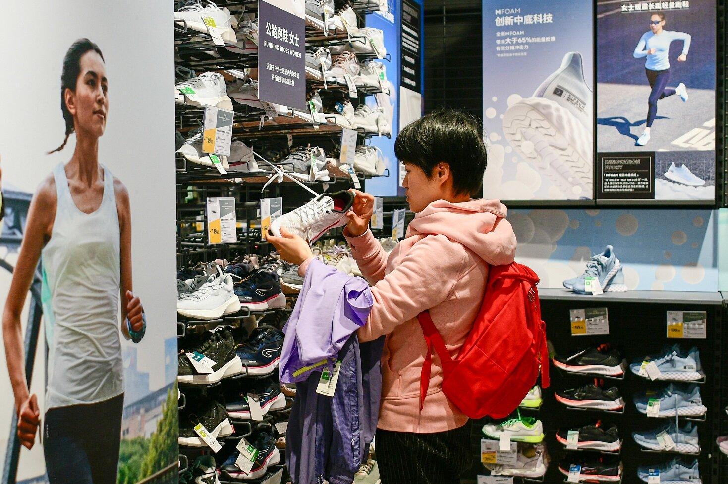 在马拉松热潮的带动下,相关商品的销量也随之升高。挑一双合适的跑鞋,来日再战。劳动报记者颜筱依 摄影