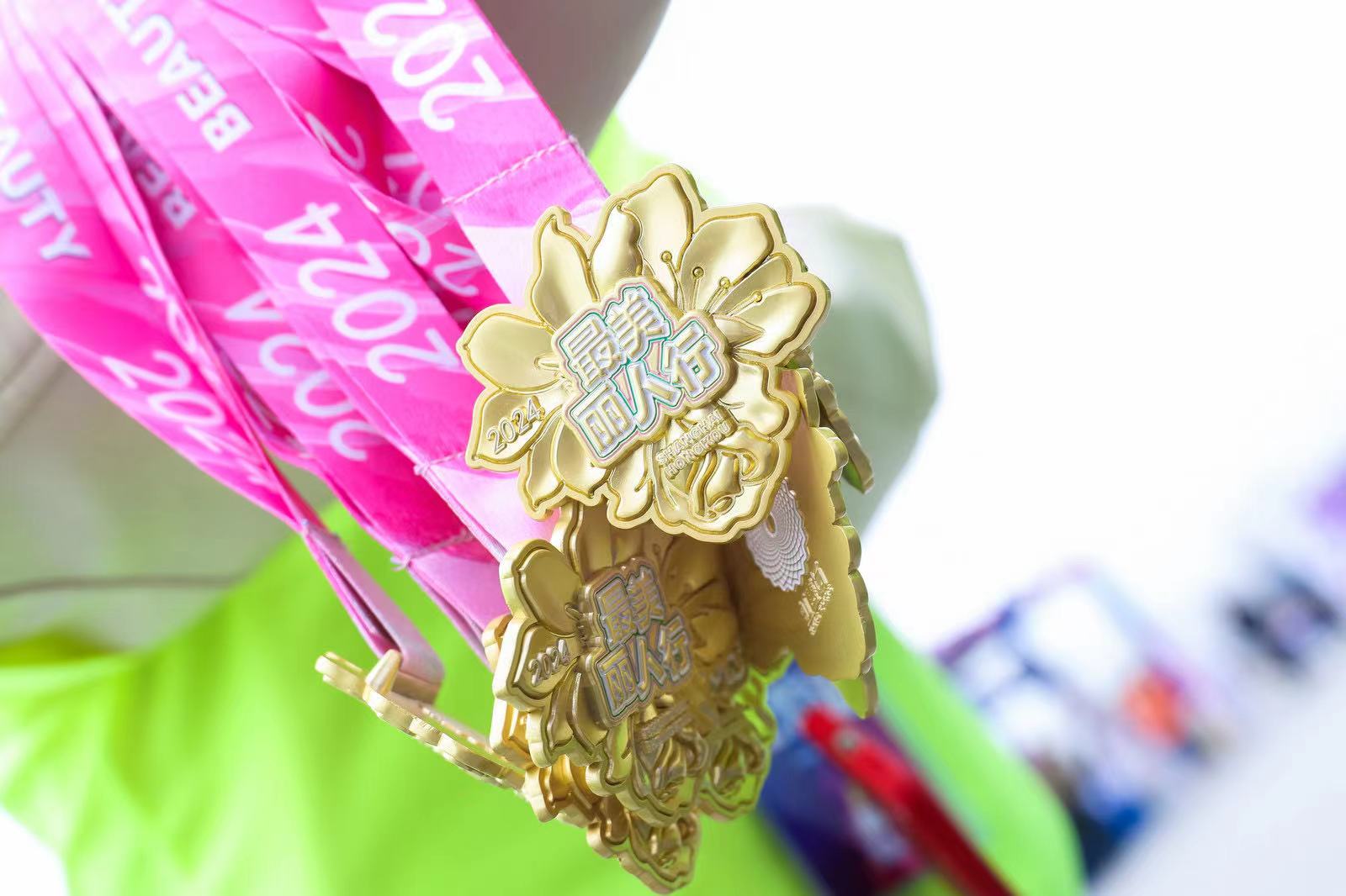 同时,粉紫色系的赛事服装映衬出女子的娇艳面庞,花型赛事奖牌蕴含樱花、玉兰花、玫瑰的元素意喻不同女性都有自己独具特色的美,每个细节都在打造女性漫步北外滩的场景,实现女性之美与虹口北外滩之美的双向赋能。