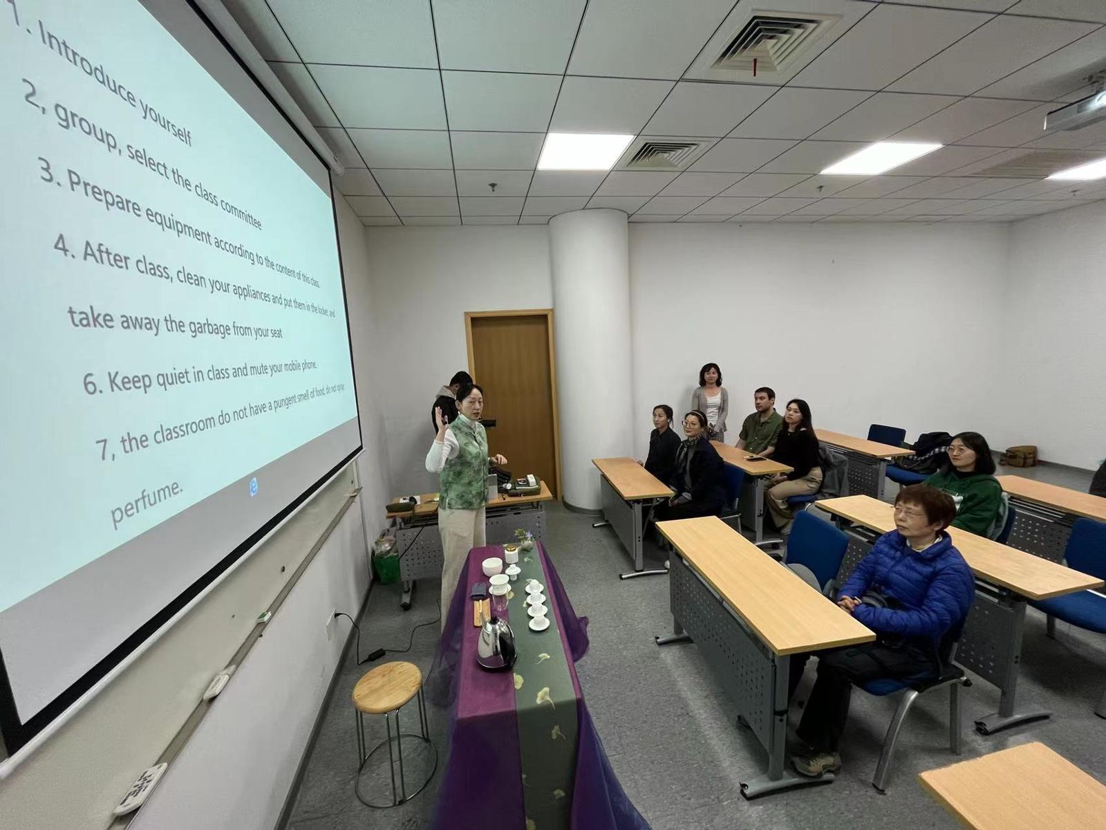 记者探班当天,市群艺馆里就有茶艺、手碟两个双语班同步开课。茶艺班冉老师告诉记者,这是一个中外荟萃的特殊班级,大家语言不同、肤色各异,却因为对中华茶文化的热爱聚在了一起。为了方便所有学员更好理解讲课内容,市群艺馆总校特意为这个班级配备了一名英语专业八级的志愿者担任“翻译”,这让班上的外国学生们少了许多后顾之忧。