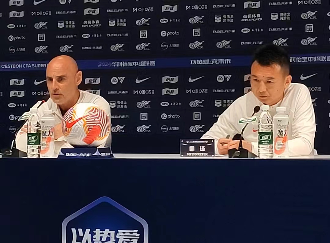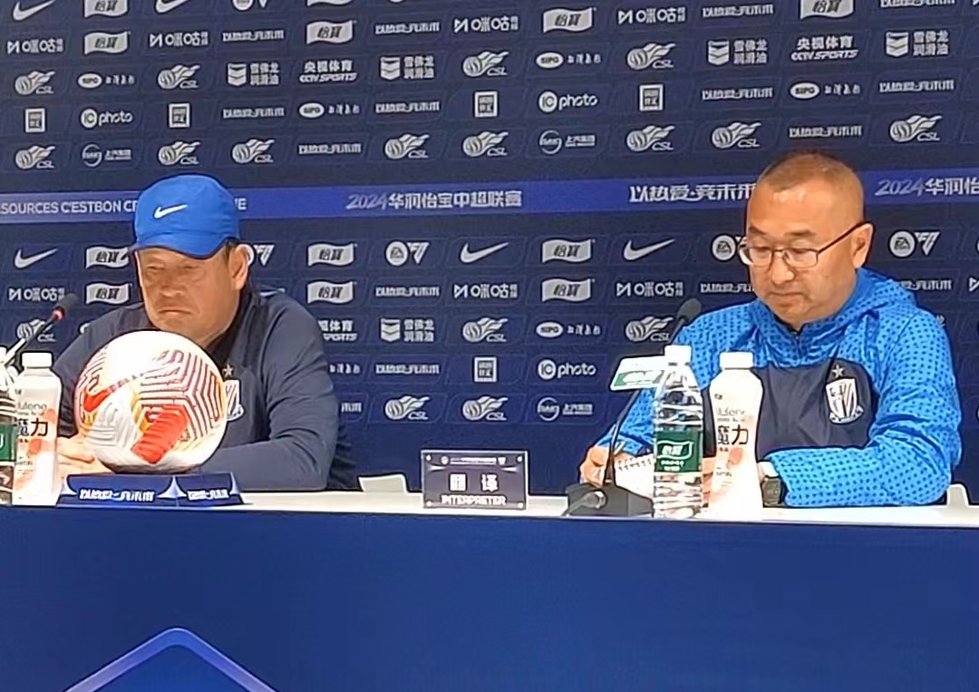 申花主帅斯卢茨基出席赛前发布会。劳动报记者王卫朋 摄影