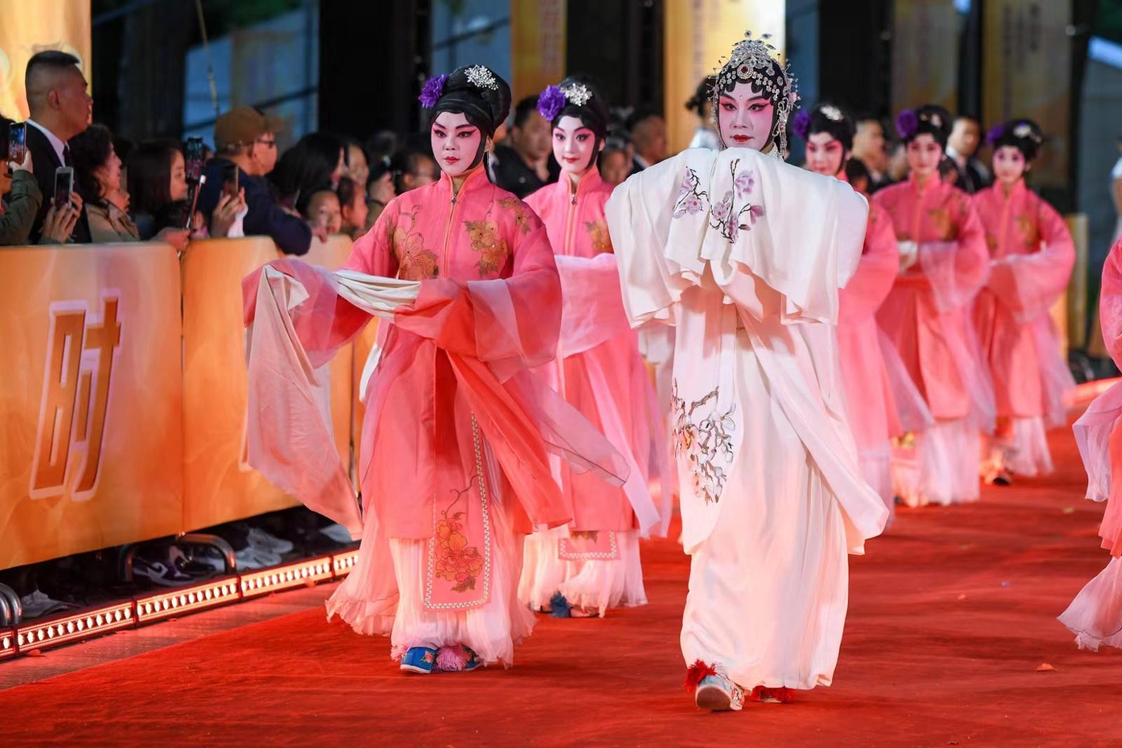 演员们身着戏服走上红毯。劳动报记者颜筱依 摄