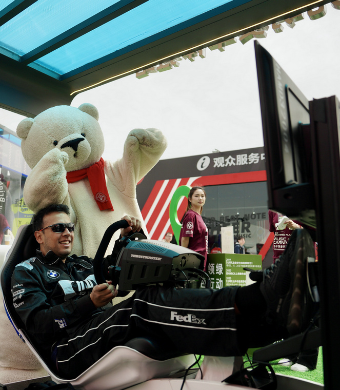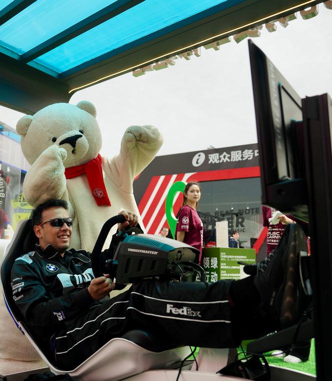 亲自上阵。光看赛事不过瘾,不如亲自比划一下,水景广场丰富的主题活动让观众可以沉浸式体验赛车文化。劳动报记者贡俊祺 摄影