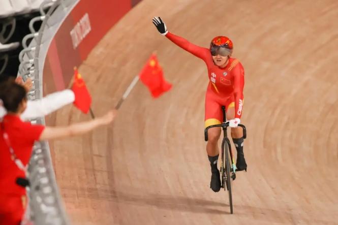 2016年、2020年两届奥运会场地自行车女子团体竞速赛的冠军钟天使,她也是全球唯一一位实现自行车项目奥运冠军卫冕的女运动员。上海体育供图
