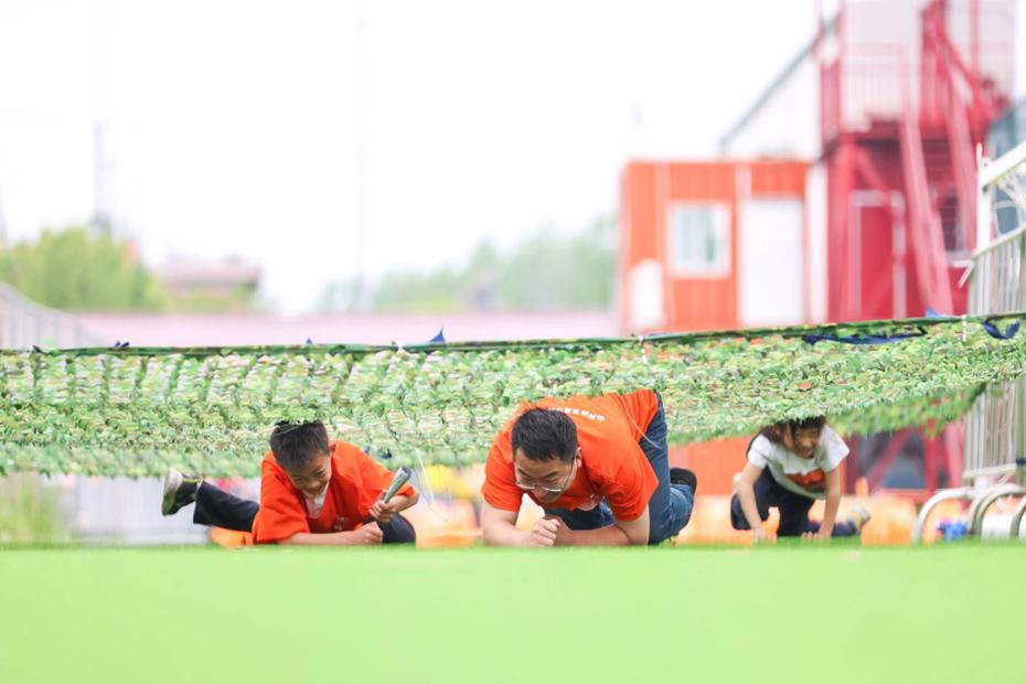 陆地上,翻滚轮胎、千米追逐、匍匐前进需要全员完成,不仅考验参赛家庭的耐力和技术,更考验家庭成员间的协作性。