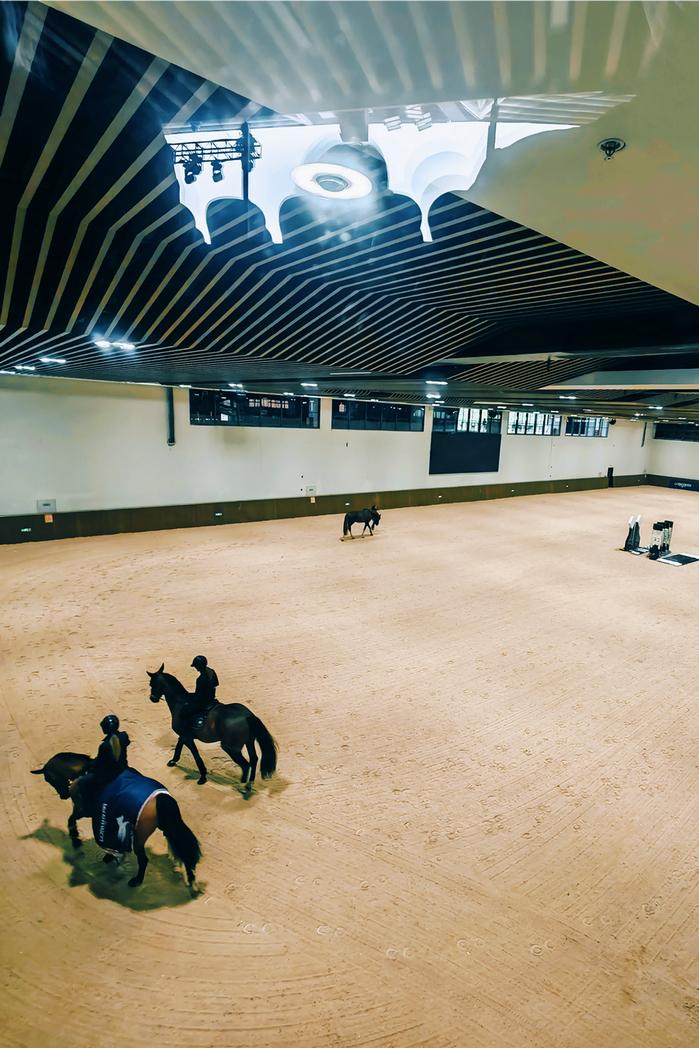 相比于之前设置在中华艺术宫前方的比赛场馆,久事国际马术中心的落成,让这些“马匹选手”生活得更加舒适。整个马术中心的一楼几乎都是围绕马儿们设置的各类服务区,包括马匹的美容院、医院、隔离马厩、洗澡间、餐点准备间等诸多功能区域。
