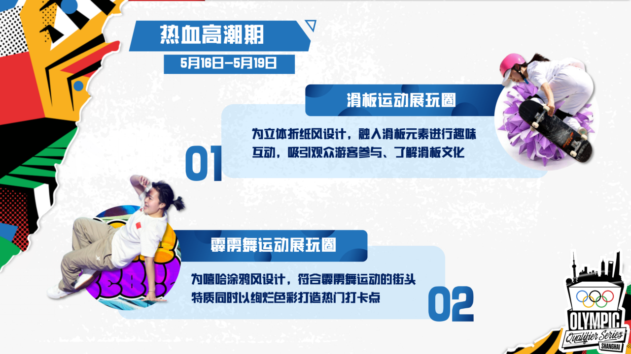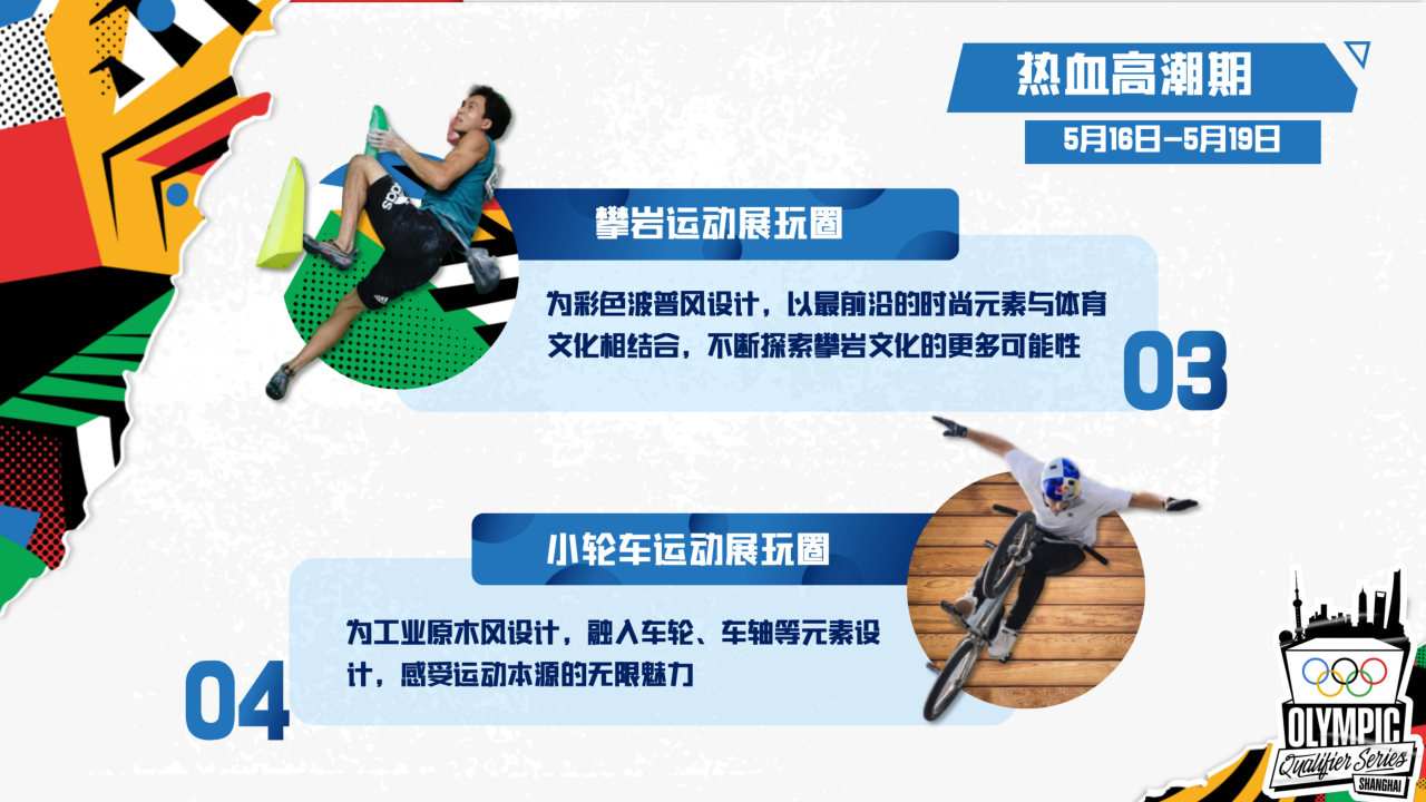奥运会资格系列赛是《奥林匹克2020+5议程》的一个重要项目,是国际奥委会新设立的一项将体育赛事与城市文化相结合的节日型系列赛,包括霹雳舞、攀岩、滑板和自由式小轮车4个大项6个分项的比赛,全球举办两站,每站为期4天,比赛结果将影响这4个项目运动员巴黎奥运会的参赛资格,赛事期间,还将配套举办集体育、艺术、音乐和文化于一体的城市体育节活动,让观众沉浸式体验热烈的奥运氛围。