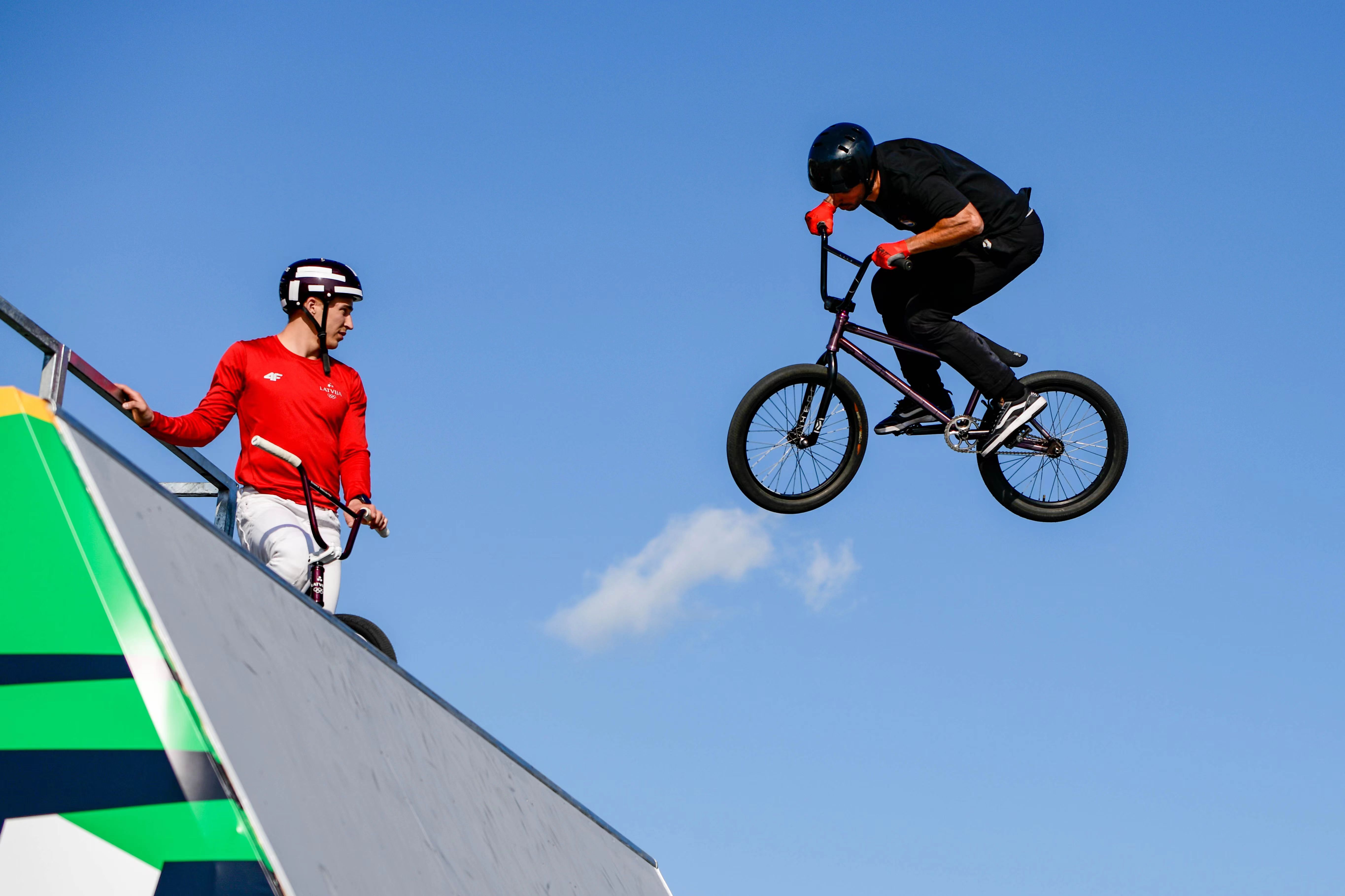 小轮车选手已经在进行官方训练。劳动报记者颜筱依 摄影
