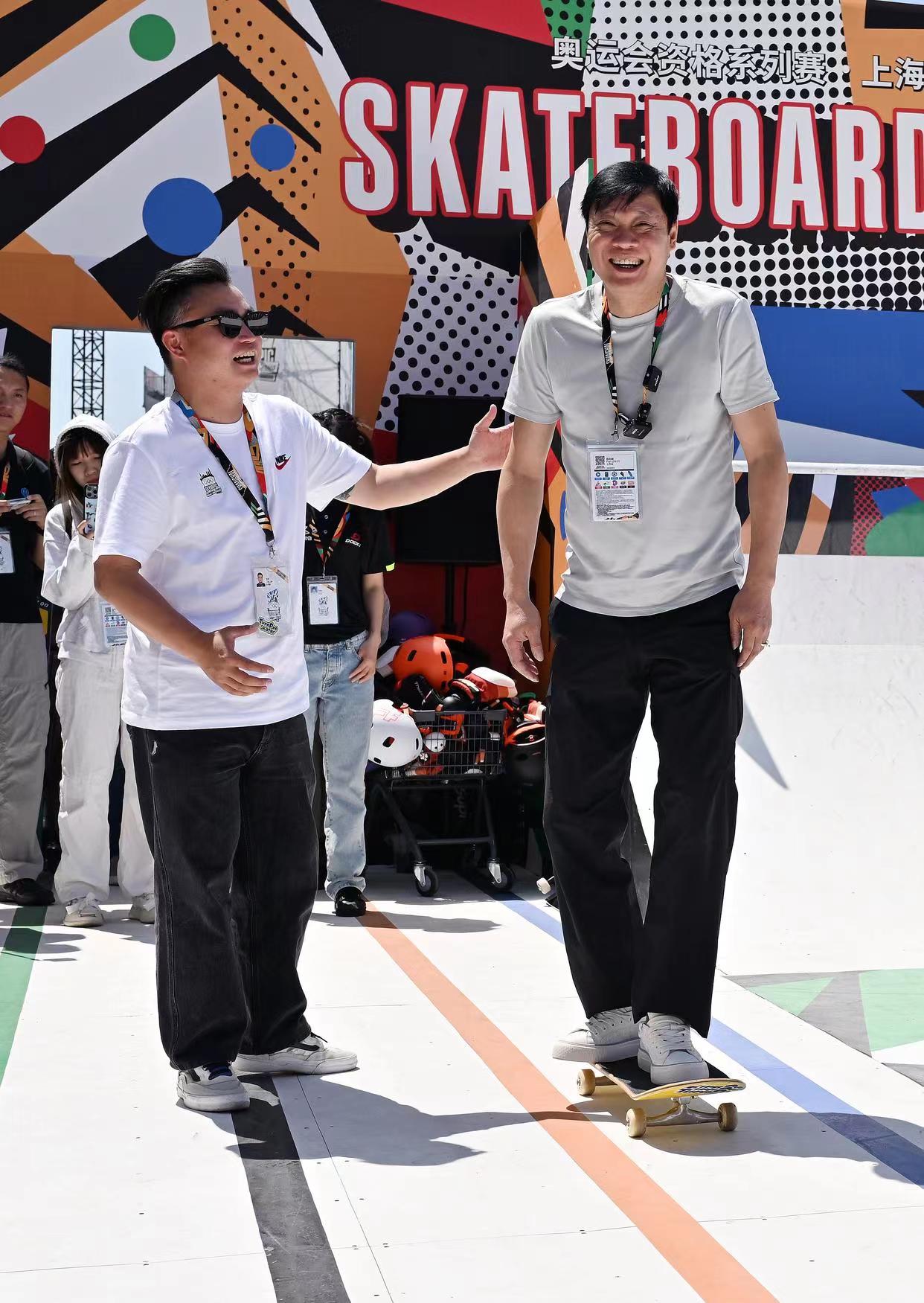 头图为吴敏霞体验滑板。新华社图