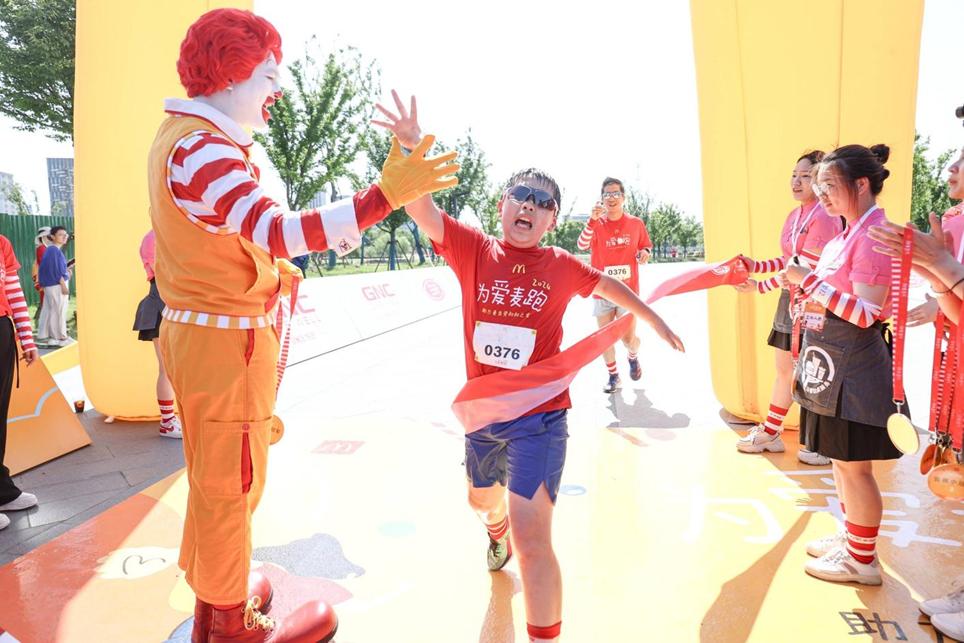 首个完赛的参跑小朋友即将冲线。麦当劳中国供图