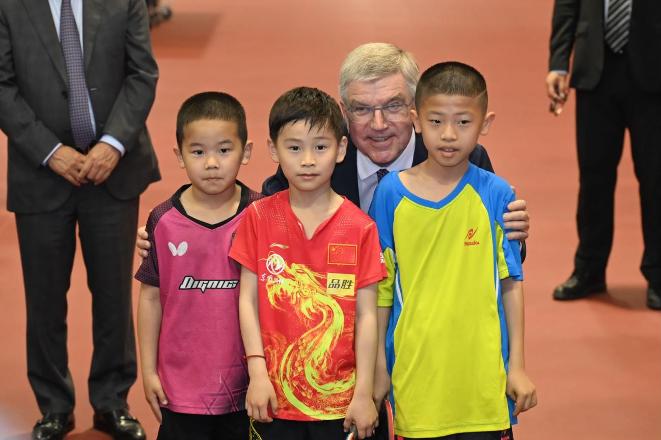 仪式结束后,巴赫一行参观了上海体育大学中国乒乓球学院和上海体育大学奥林匹克研究院。在中国乒乓球学院,巴赫饶有兴致地观看了少年班小队员跟乒乓球机器人的对练,并挥拍体验。在奥林匹克研究院,一场奥林匹克价值观教育正在开展,上体学子、奥运冠军钟天使向同学们讲述自己实现中国场地自行车项目奥运金牌零的突破的奋斗历程。巴赫与同学们亲切互动并合影留念。