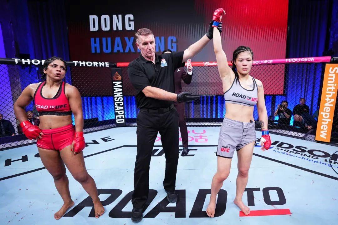 董华香获得女子草量级胜利。UFC供图