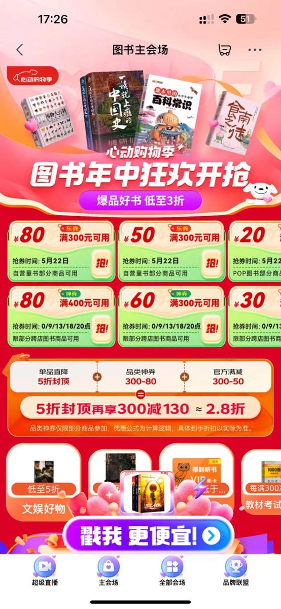 京东图书页面的醒目位置,仍有到手2.8折等字眼。图自网络