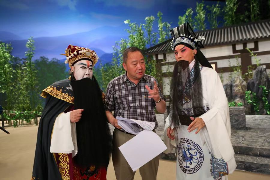 导演滕俊杰(中)在《曹操与杨修》拍摄现场。受访者供图