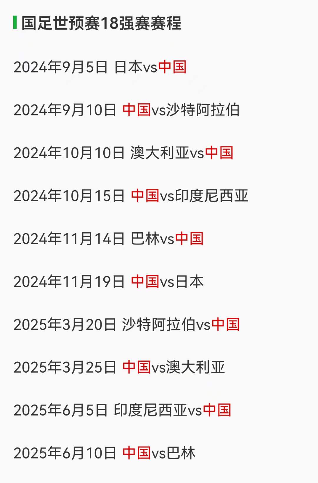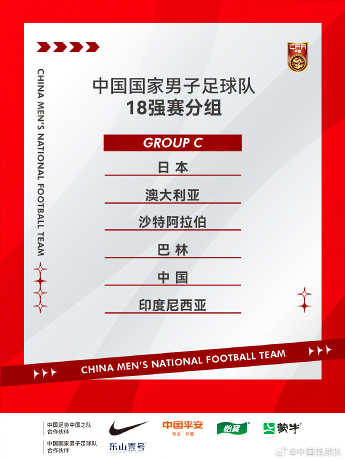 北京时间6月27日下午,2026年美加墨世界杯预选赛亚洲区第三阶段18强赛的分组抽签在吉隆坡揭晓,中国男足国家队的签位与上一届基本相同,再次遭遇日本、沙特和澳大利亚三支老对手,另外两个同组对手则分别是巴林队和印尼队。