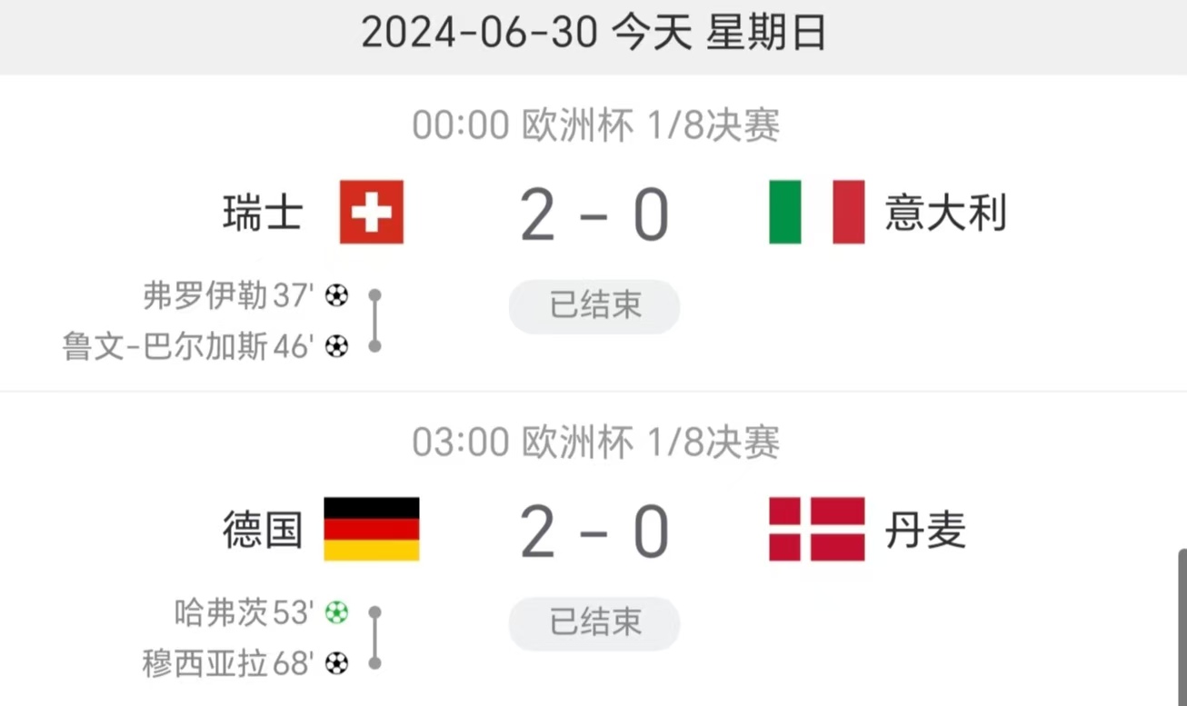 北京时间7月1日凌晨,2024年欧洲杯又将迎来两场1/8决赛,当前一天的卫冕冠军意大利队以0比2负于瑞士队,之前表现一般的英格兰队恐怕要以此为警钟,打起十二分的精神了。
