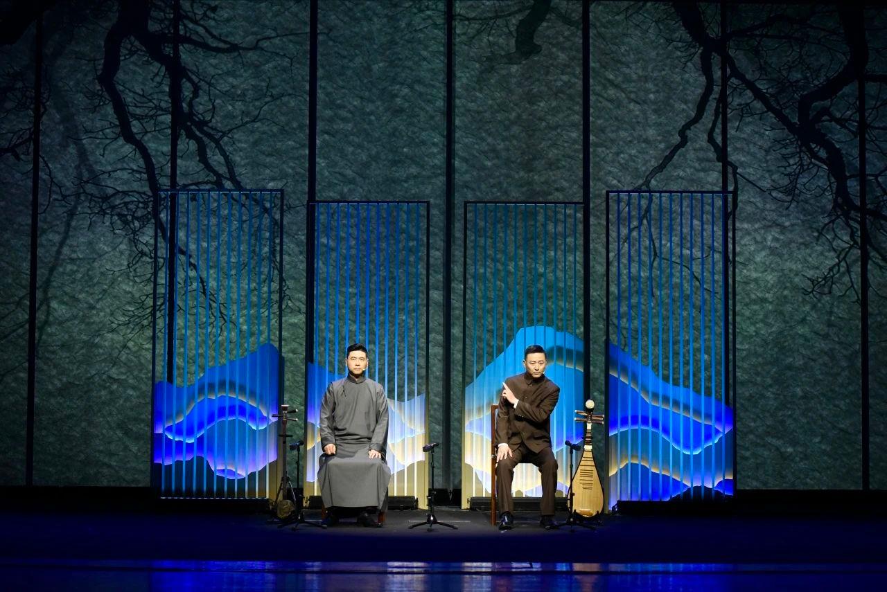 再如不同于以往评弹演出中一个演员往往要“起”多个角色,这次演员的角色相对固定,而且灯光与上场的走位也更接近戏剧作品,让原本比较平面的评弹舞台变得更立体了。听觉上,立体声效的氛围感拉满,也让老听客们有了不一样的听书体验。