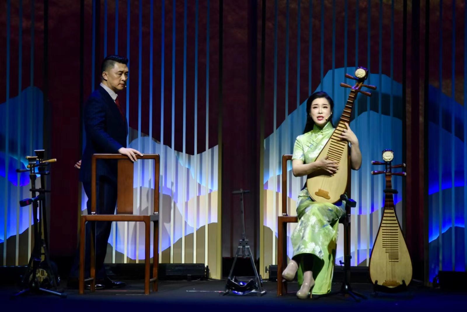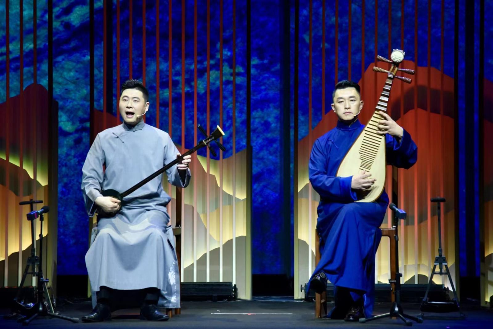 黄海华、高博文(右)演绎评弹《千里江山图》。受访者供图