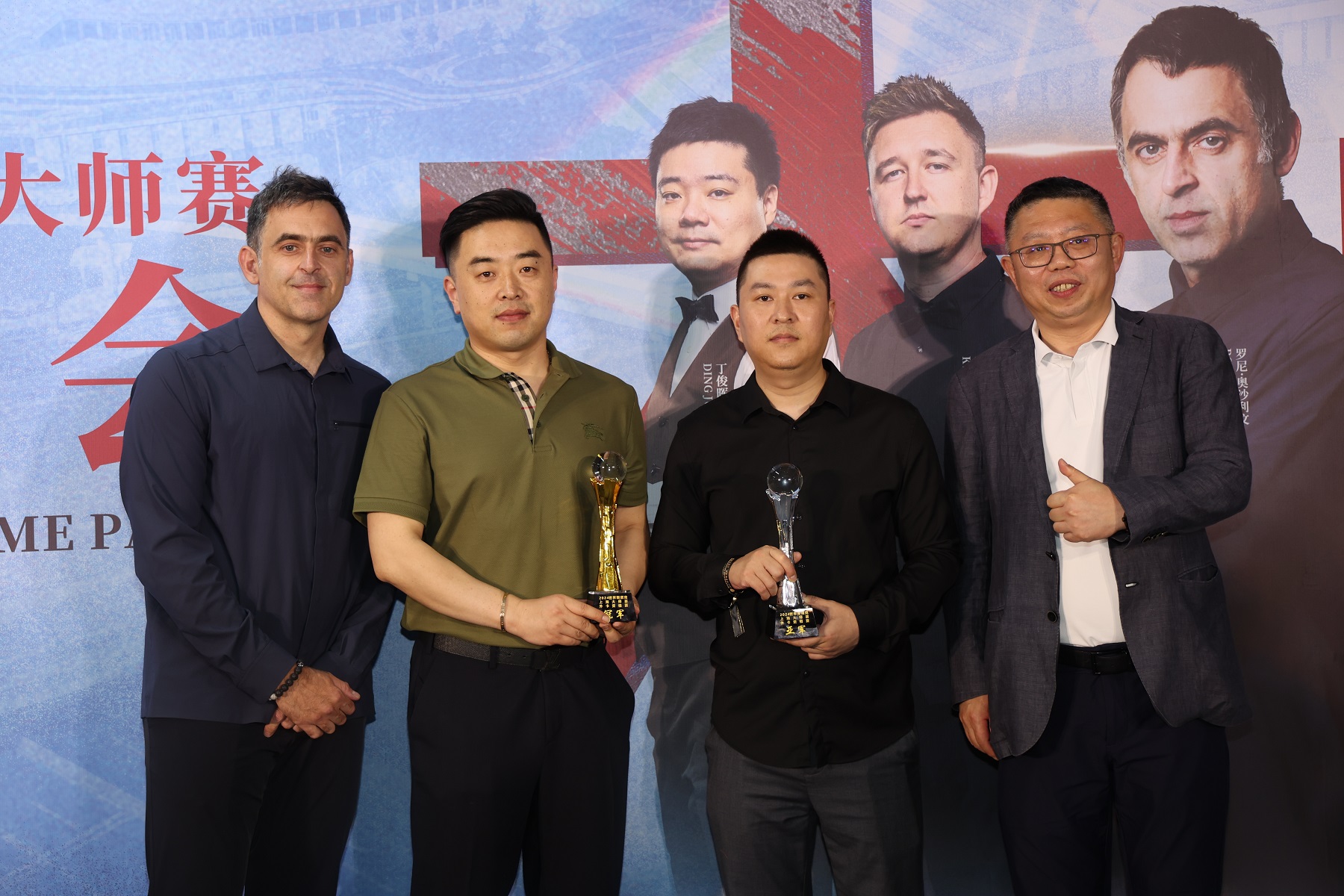 马嘉槟和奥沙利文为外卡资格赛冠亚军颁奖。赛事方图