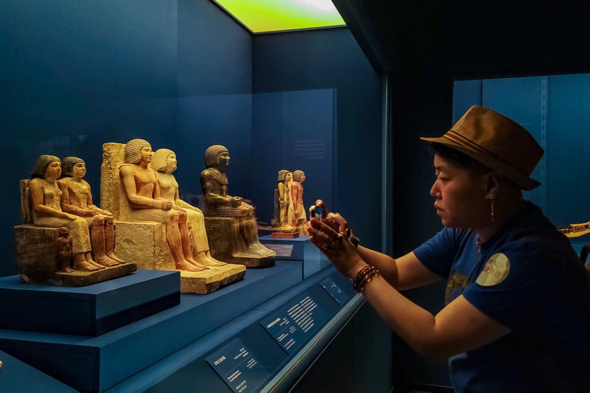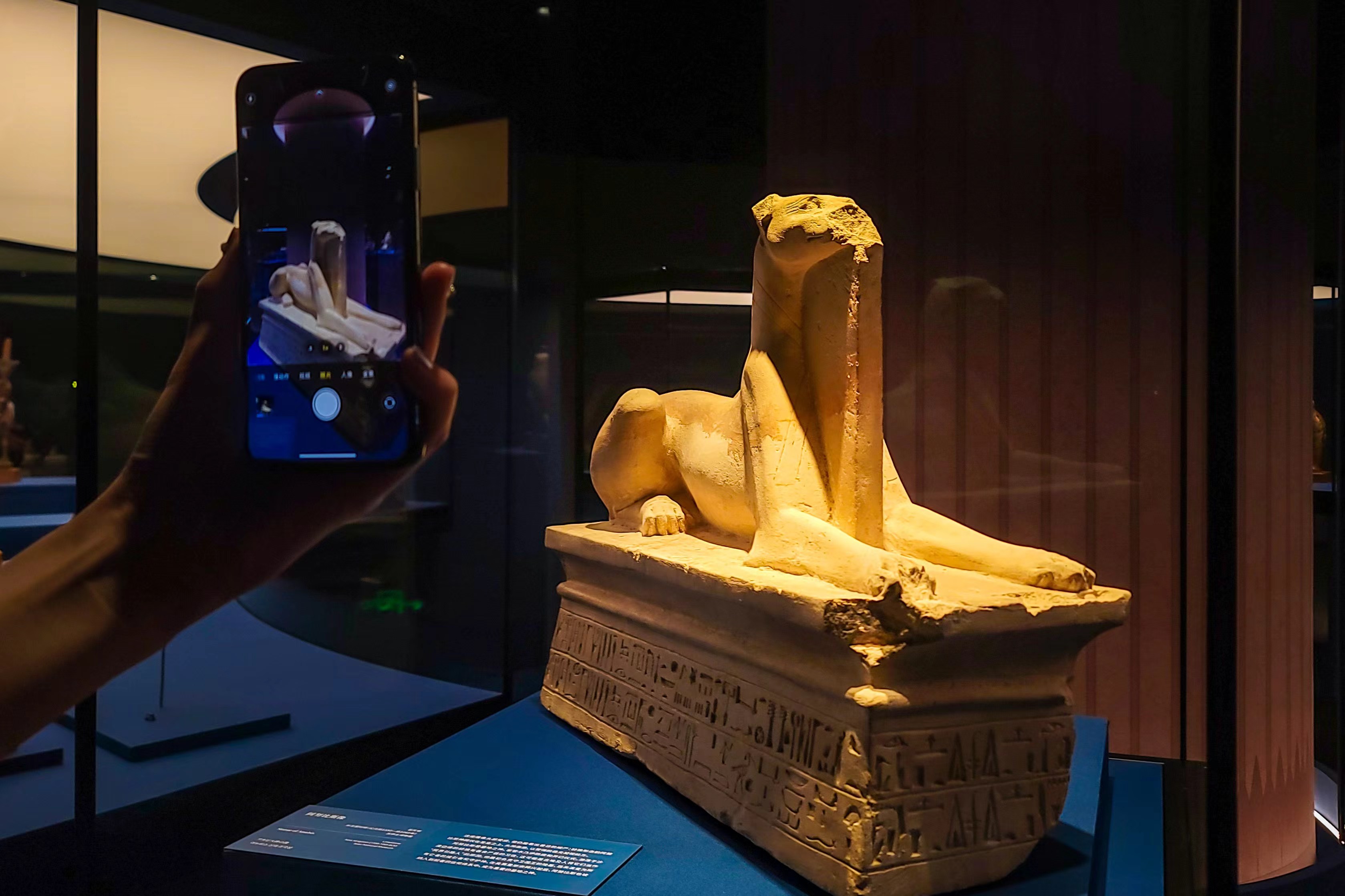 观众拍摄陈列的埃及文物。劳动报记者颜筱依 摄影