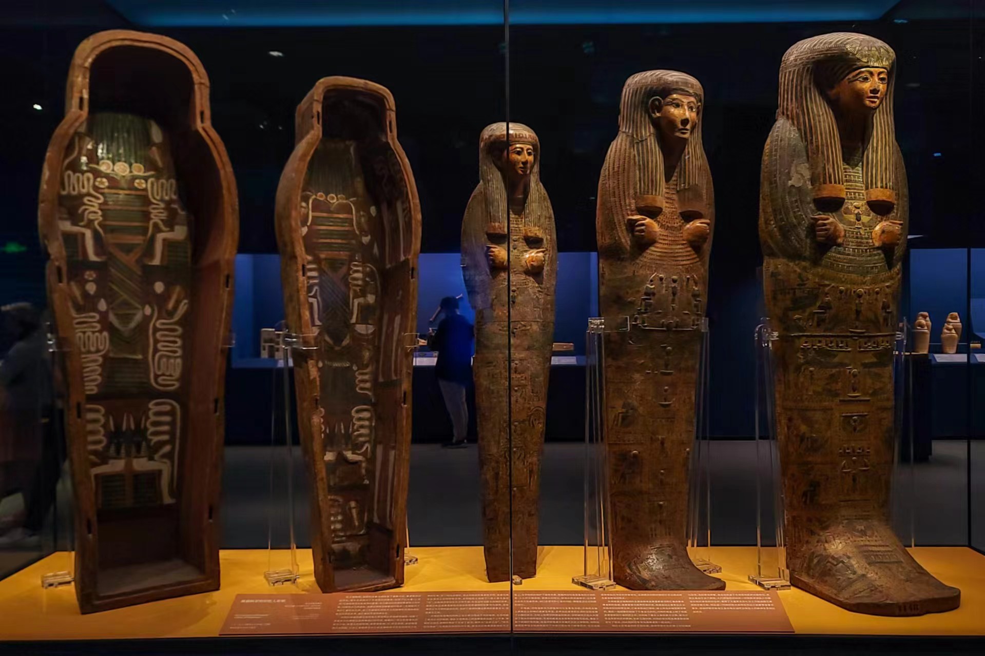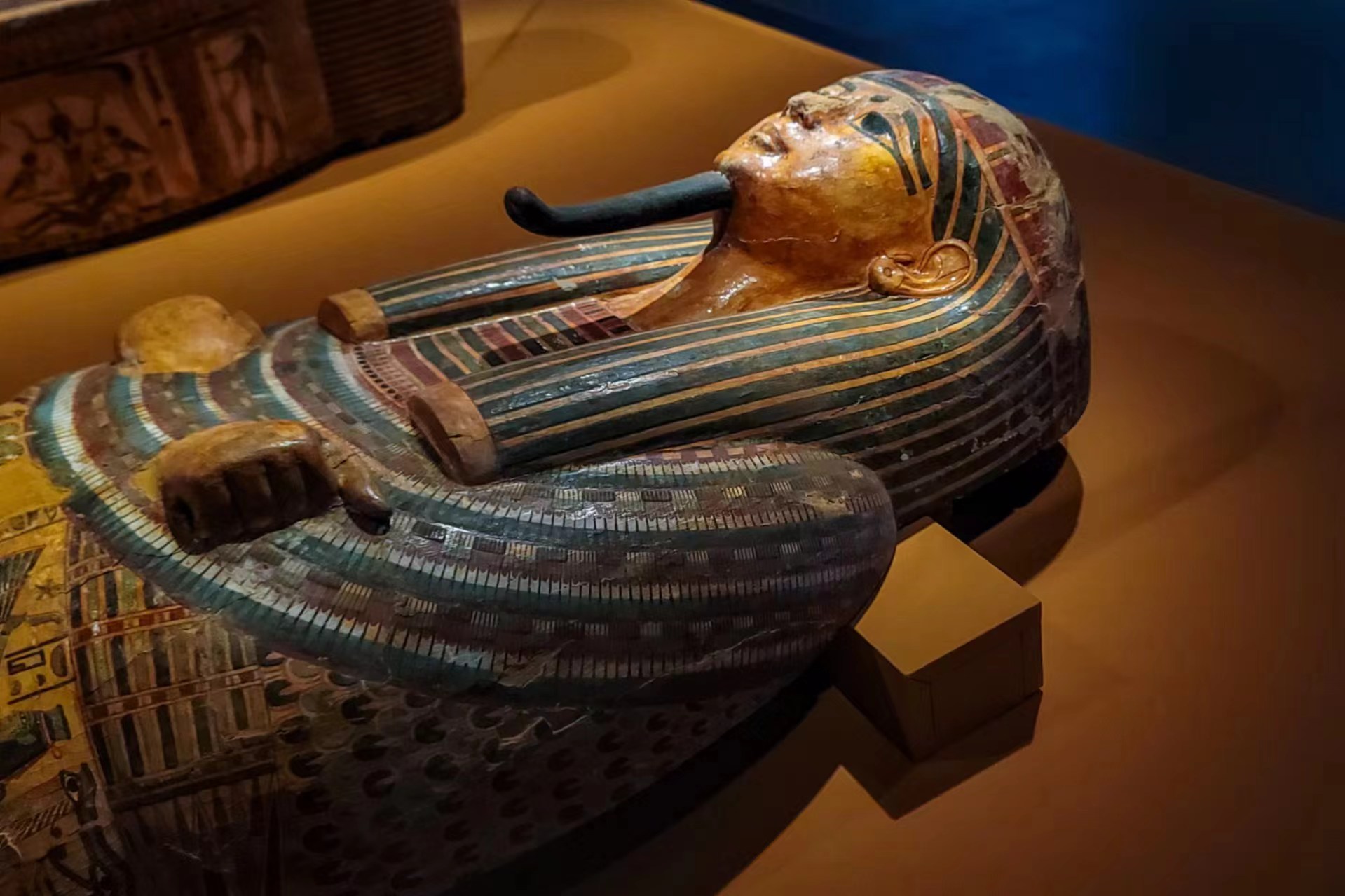 阿蒙纽特纳赫特彩绘人形内棺一景。劳动报记者颜筱依 摄影