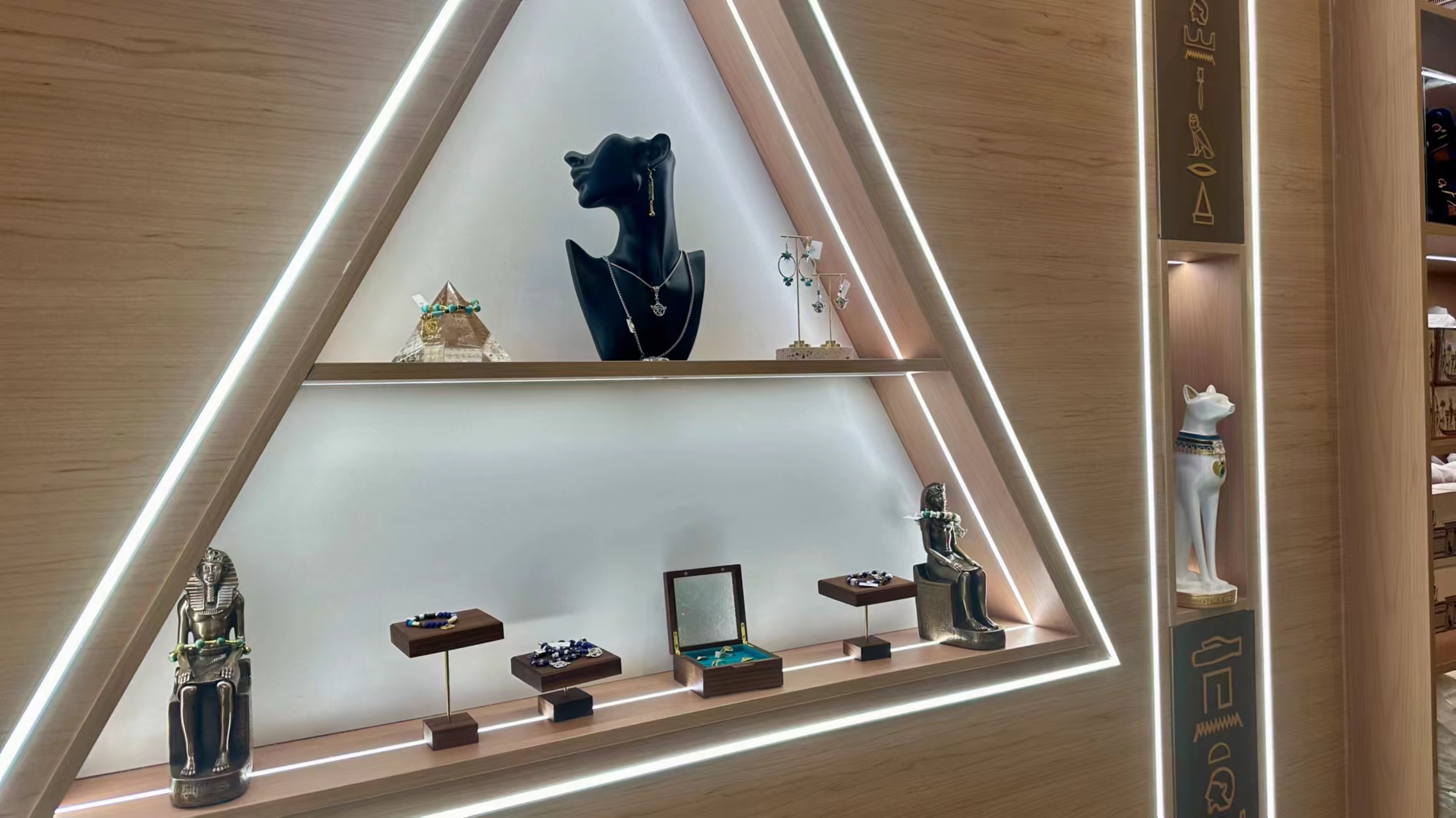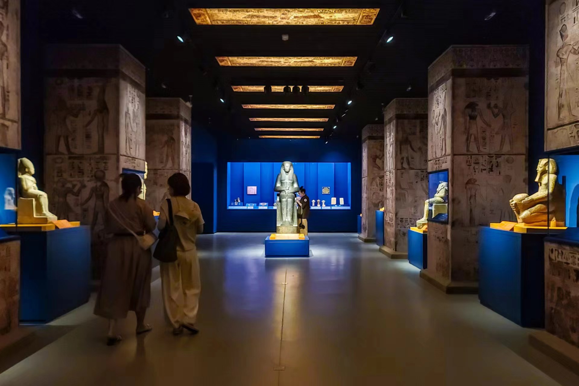 作为上海博物馆“对话世界”文物艺术大展系列第四展,“金字塔之巅:古埃及文明大展”于7月19日在上海博物馆人民广场馆正式面向公众开放。7月16日,劳动报记者探访了位于一楼的“法老的国度”展厅和文创商店。