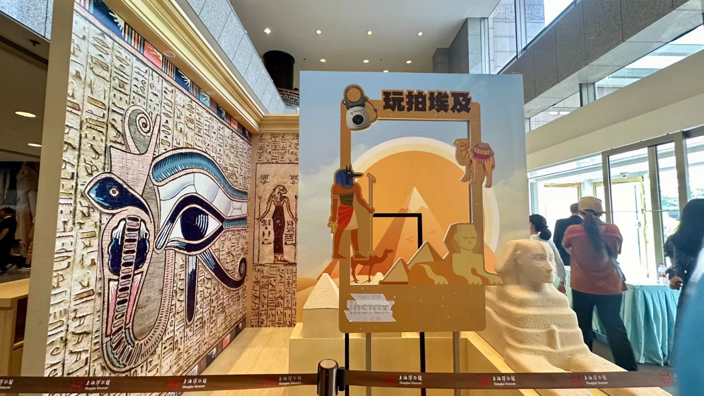 上海博物馆金字塔之巅:古埃及文明大展将于7月19日正式开幕,头图为博物馆大厅颇具埃及风情的背景装置。劳动报记者颜筱依 摄影