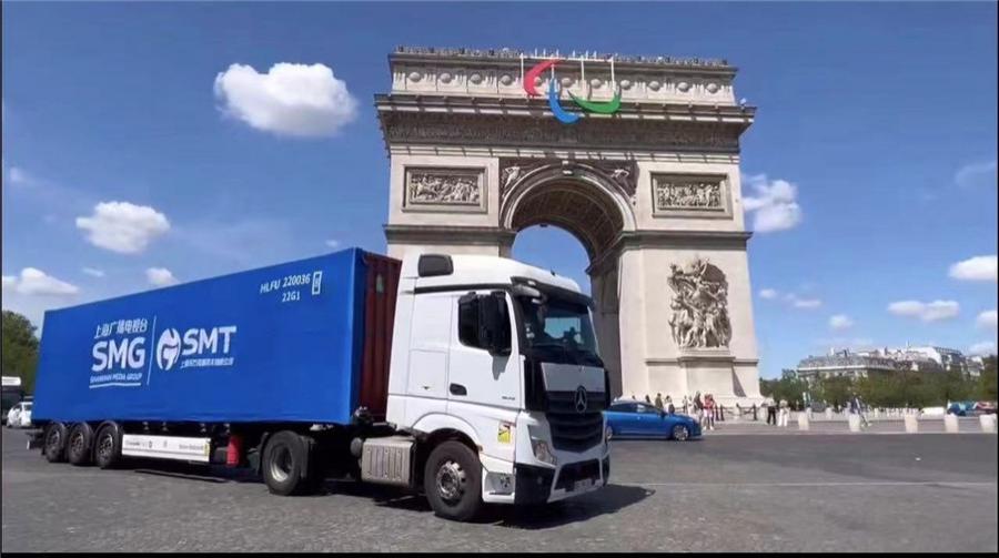 头图为Cube设备车亮相巴黎。SMG供图
