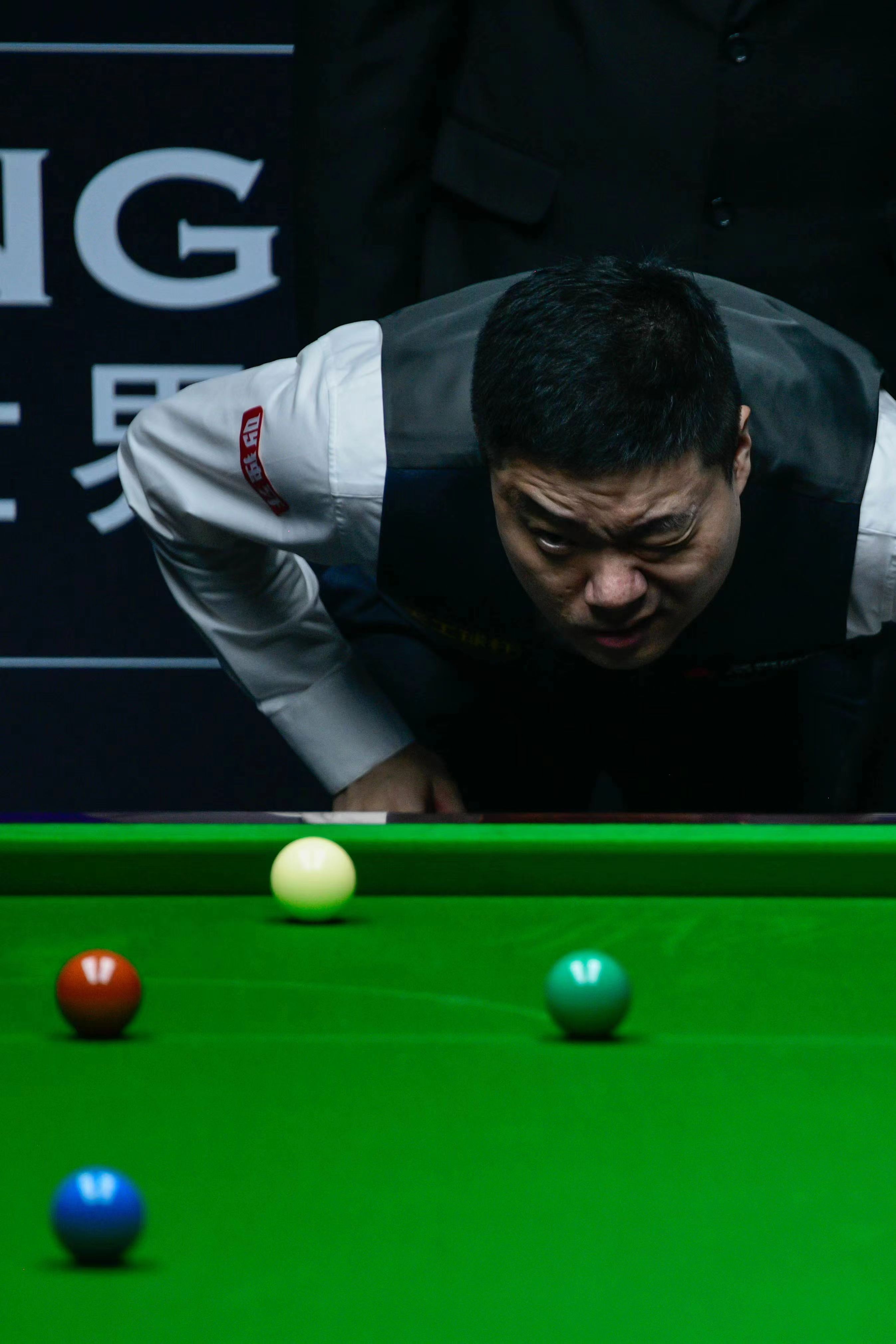 斯诺克的每一次击球,都需要球员们精准计算路线,“中国一哥”丁俊晖正在仔细观察球路。劳动报记者颜筱依 摄影