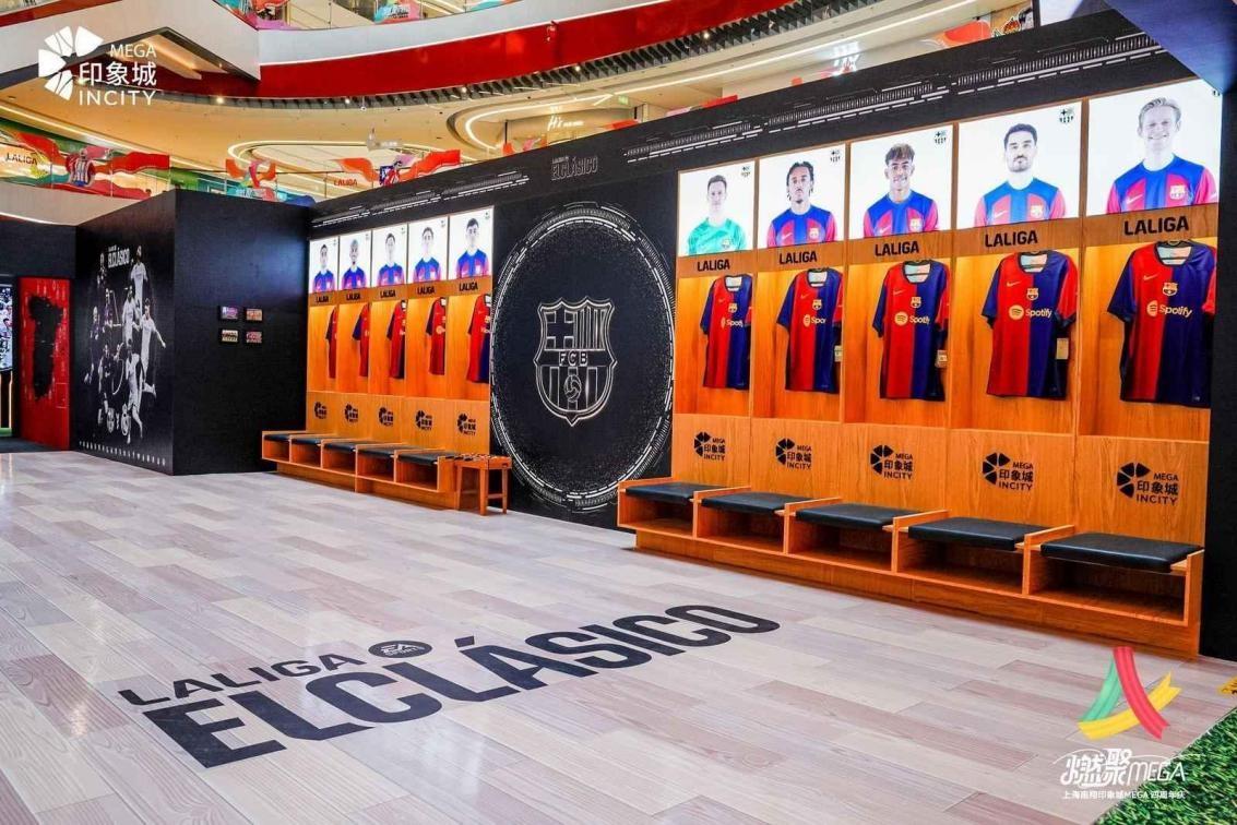 西甲的皇马和巴萨两支豪门在中国拥有大批粉丝,这一次,西班牙国家德比更衣室也搬到了上海,球迷可以走进皇马、巴萨球员们的更衣室,体验西班牙足球顶尖的两支球队更衣室的氛围;现场还与腾讯联合举办的“西甲主题电竞水友赛”,在这里可以参加虚拟新闻发布会,体验球星视角接受媒体访问的经典场景;签名球衣展示墙,西甲史上超级巨星的签名球衣一一陈列;popup区,休闲购物两不误,可以在这里找到专属于你的有趣的西甲周边纪念品。