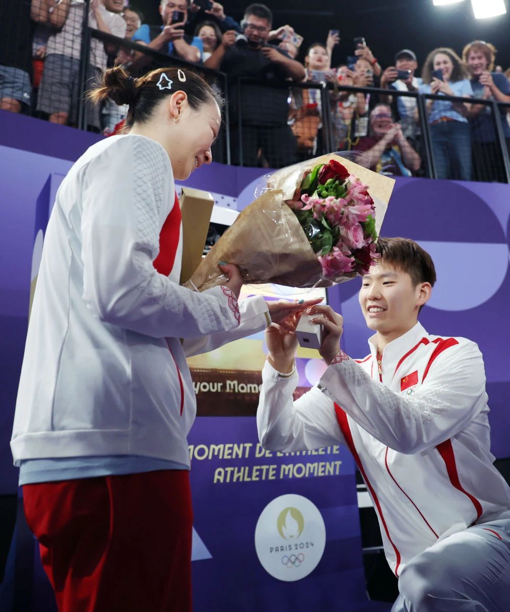 在浪漫之都巴黎,一向诞生羽球情侣的中国羽毛球队也把甜蜜的爱意洒向赛场。在北京时间8月2日深夜结束的一场巴黎奥运会羽毛球混双决赛中,中国队组合郑思维/黄雅琼以2比0战胜韩国队组合金元昊/郑娜银,夺得金牌。比赛结束之后,黄雅琼被队友刘雨辰现场求婚。