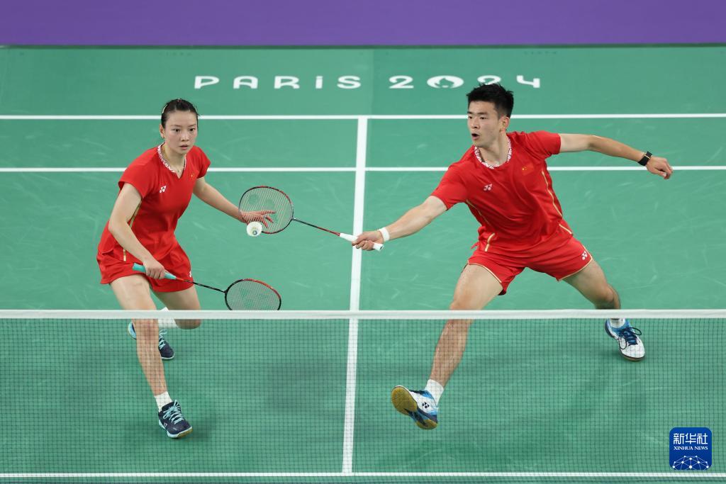 黄雅琼(左)与郑思维在比赛中默契配合。新华社图