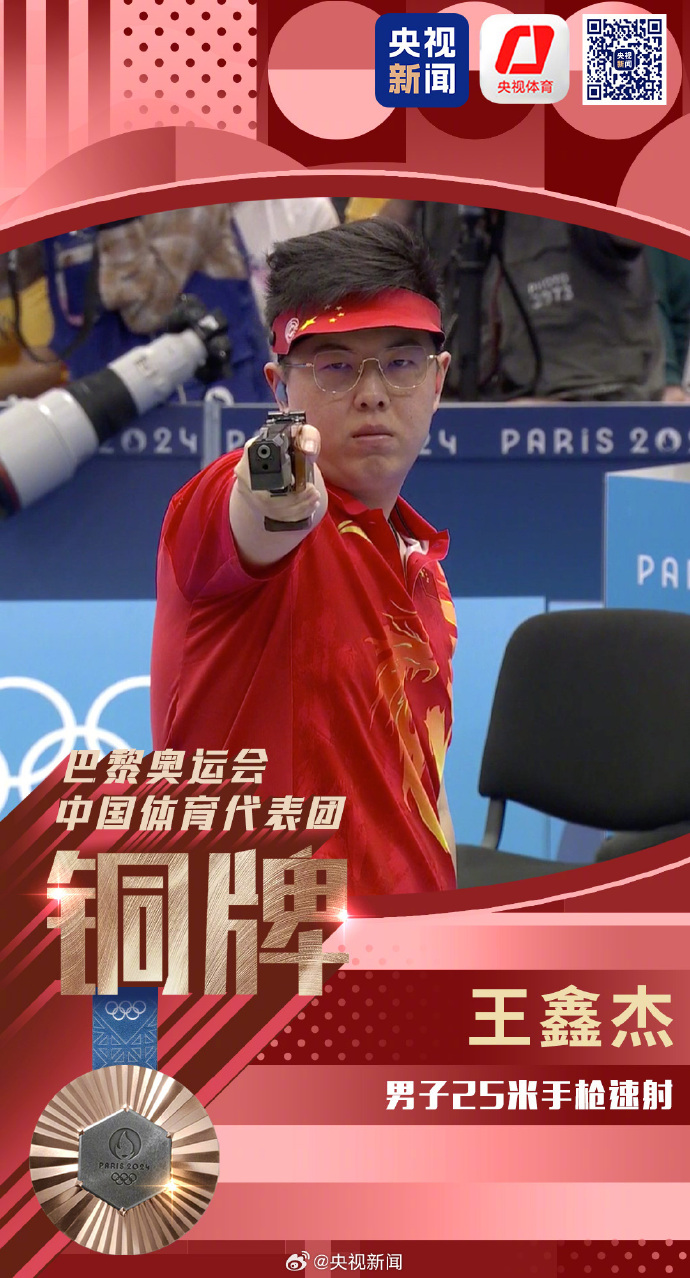 王鑫杰斩获铜牌。央视图