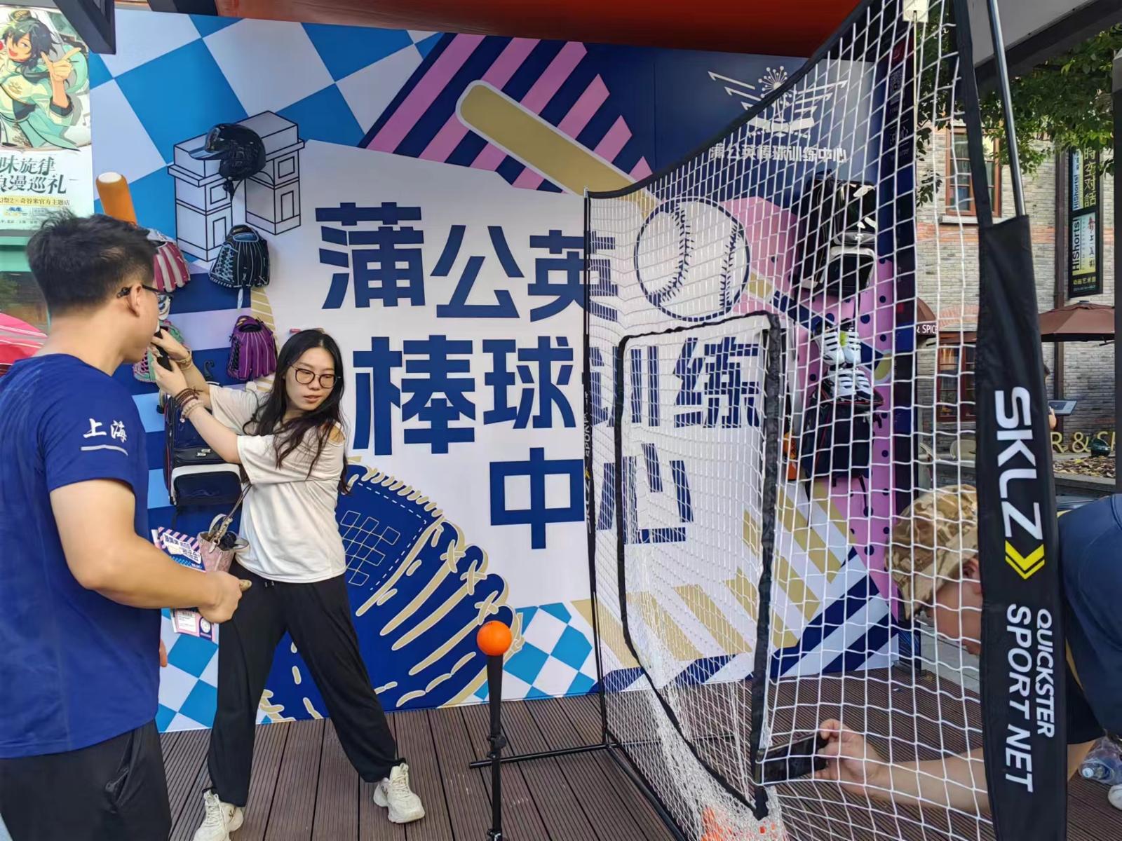 市民在“拗运会”现场体验棒球运动。劳动报记者马亚会 摄影